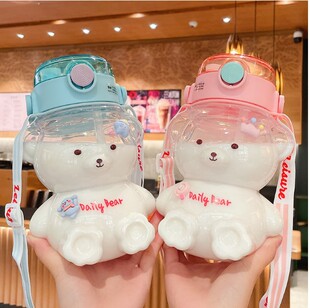 网红可爱小熊水杯大容量高颜值女生塑料杯子便携儿童吸管杯夏水杯
