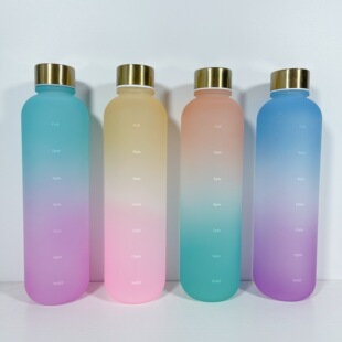 现货1000ml渐变色太空杯健身运动水壶塑料跨境带时间刻度随行杯