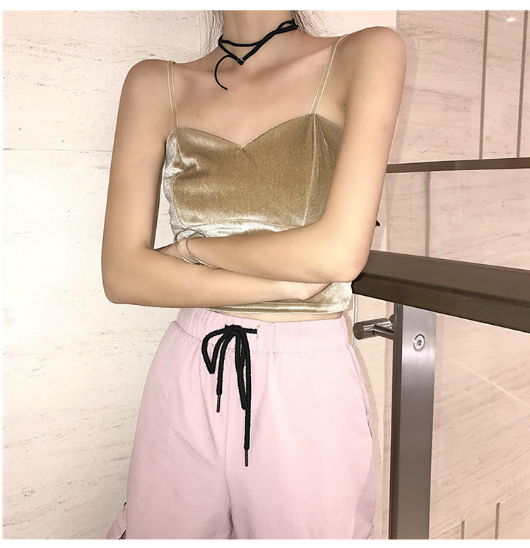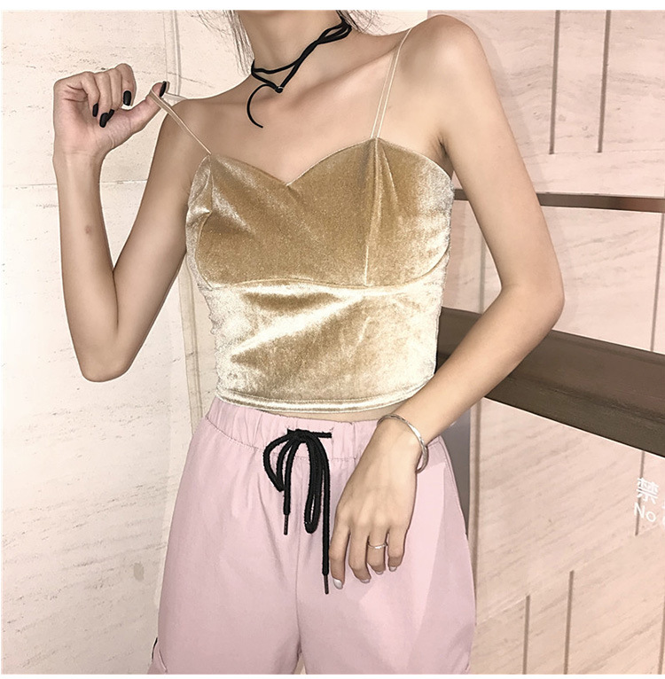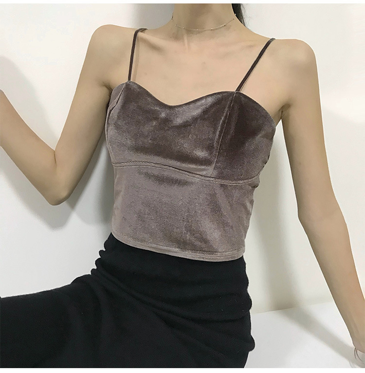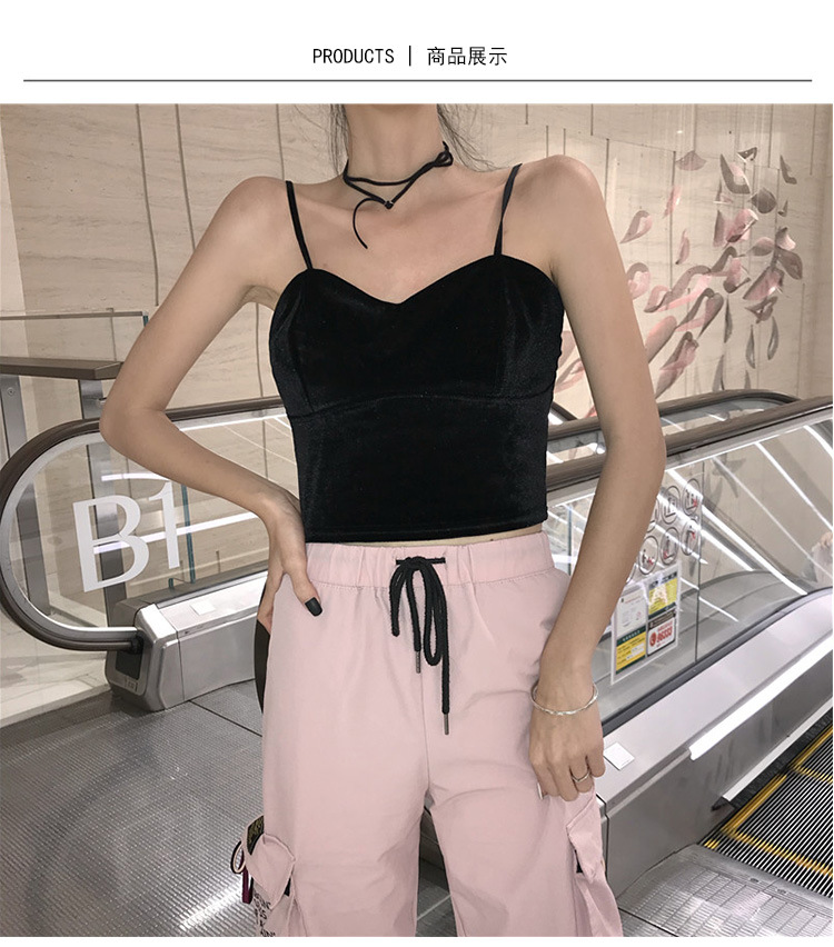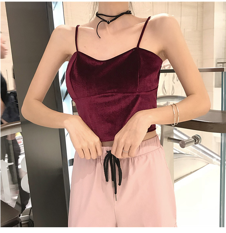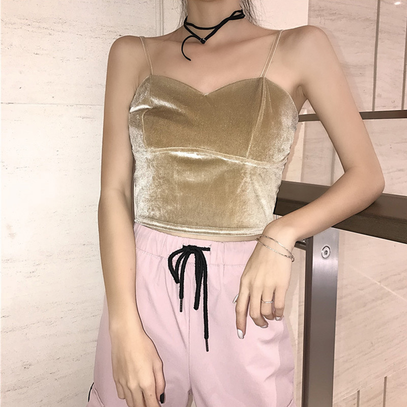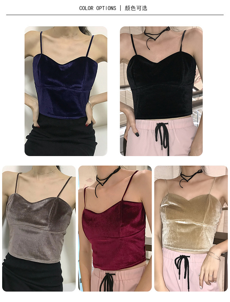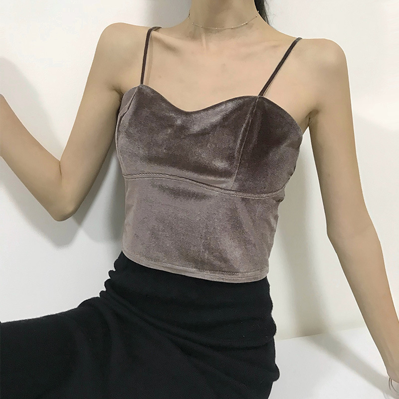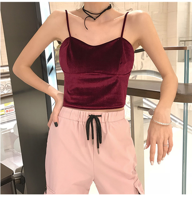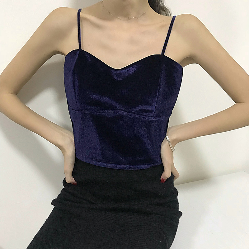 벨벳 캐미솔 여성용 V-넥 섹시 캐미솔 여성용 플러스 사이즈 빈티지 홍콩 스타일 얇은 어깨 스트랩 가슴 패드베이스 조끼 탑