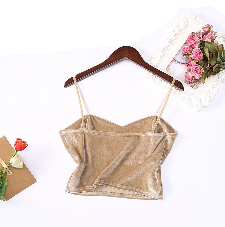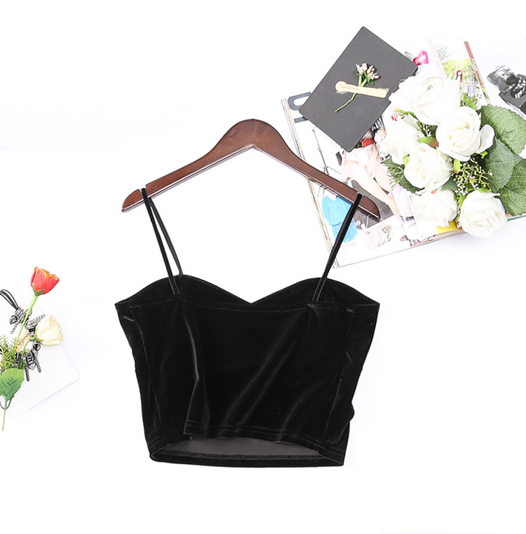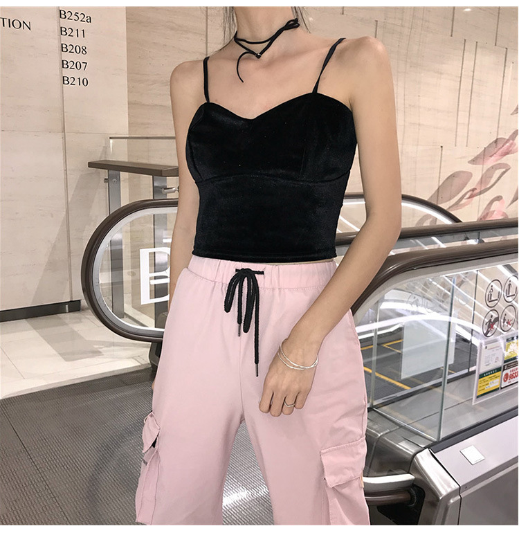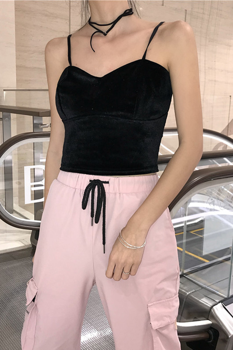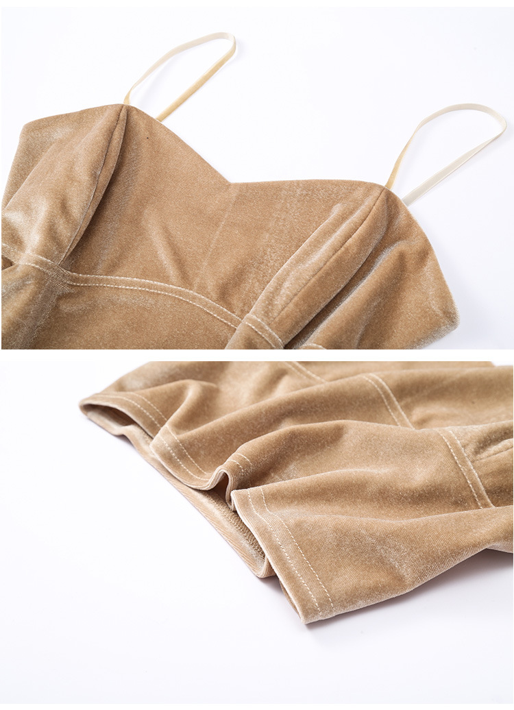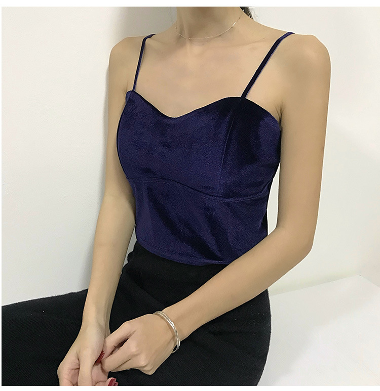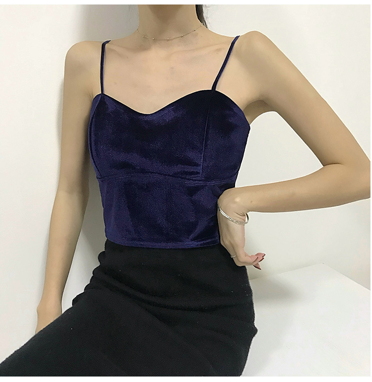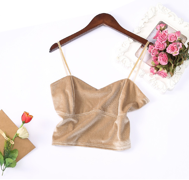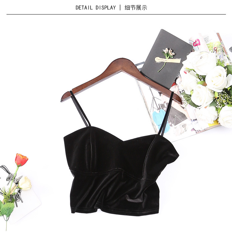 벨벳 캐미솔 여성용 V-넥 섹시 캐미솔 여성용 플러스 사이즈 빈티지 홍콩 스타일 얇은 어깨 스트랩 가슴 패드베이스 조끼 탑