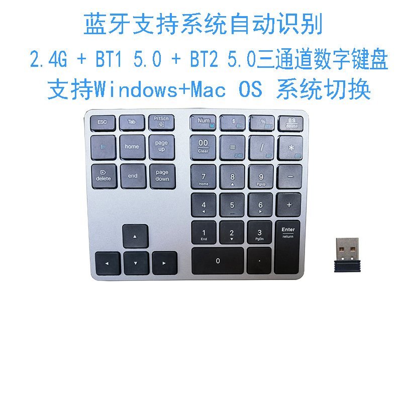 铝合金35键无线蓝牙5.0数字小键盘,双系统设置,支持Windows8/8.1/10 Mac OS系统,异步链接设计,不干扰电脑操作