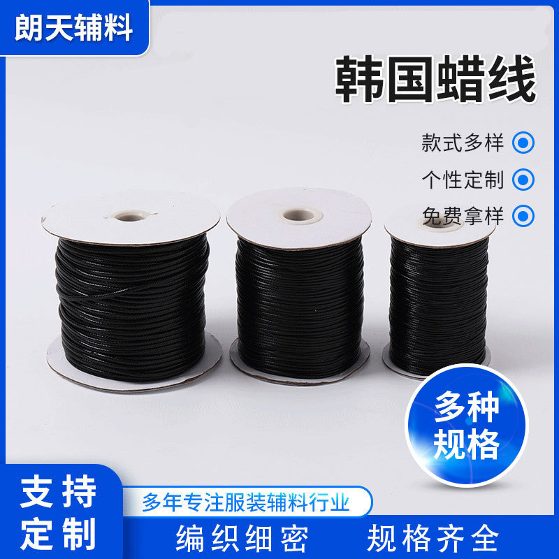 공장 재고 공급 1mm-5mm 블랙 컬러 한국 왁스 로프 왁스 라인 DIY 액세서리 보석 끈 왁스 로프스토어 가기