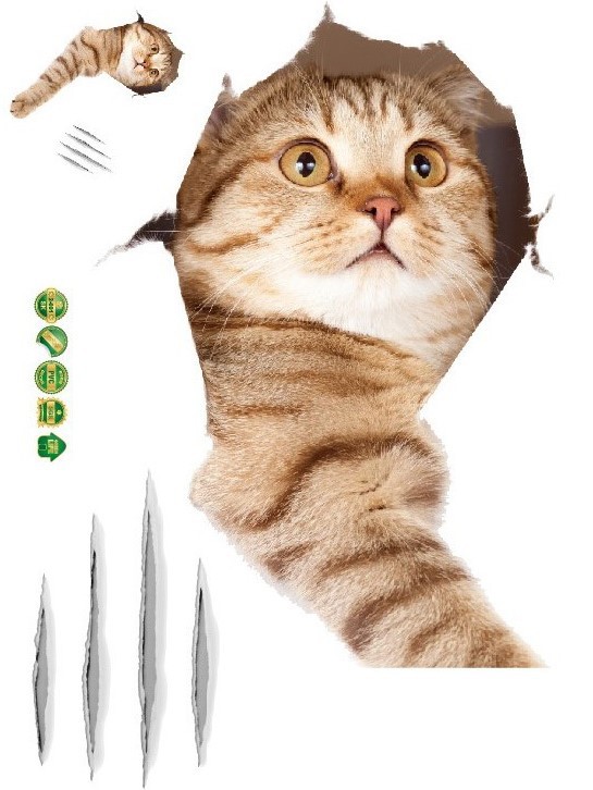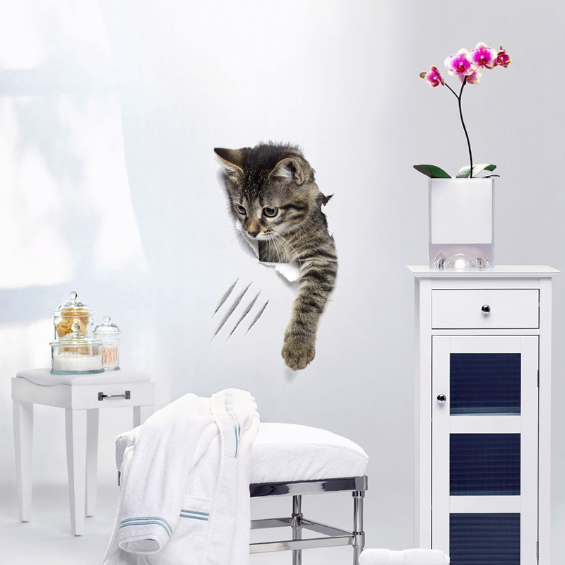 3D 입체 고양이 벽 스티커 욕실 화장실 장식 스티커 침실 거실 벽 자체 접착 이동식 스티커스토어 가기