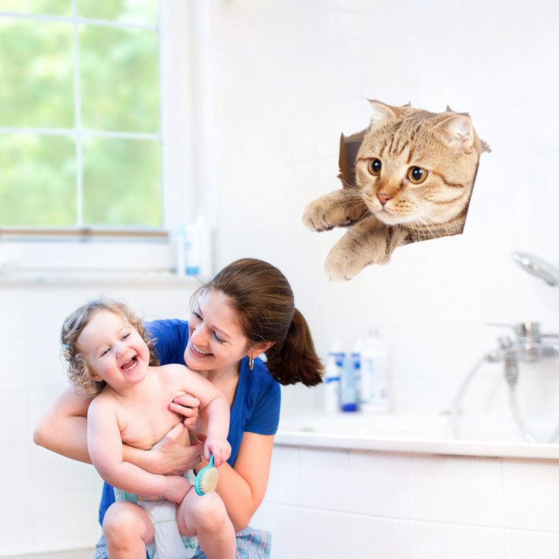 3D 입체 고양이 벽 스티커 욕실 화장실 장식 스티커 침실 거실 벽 자체 접착 이동식 스티커