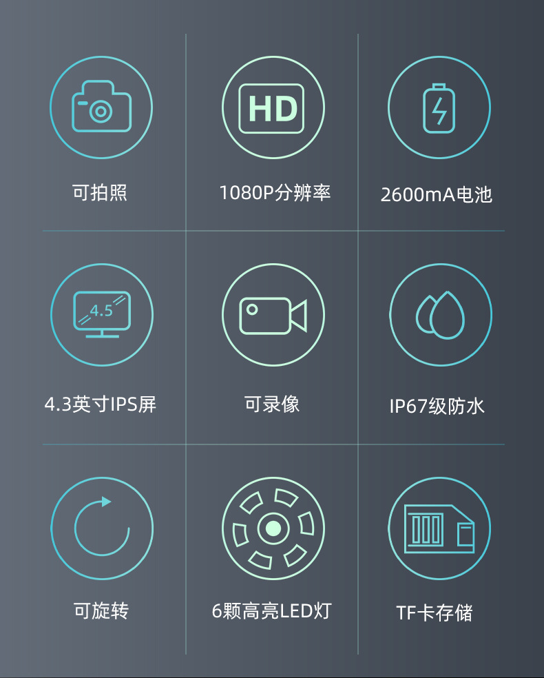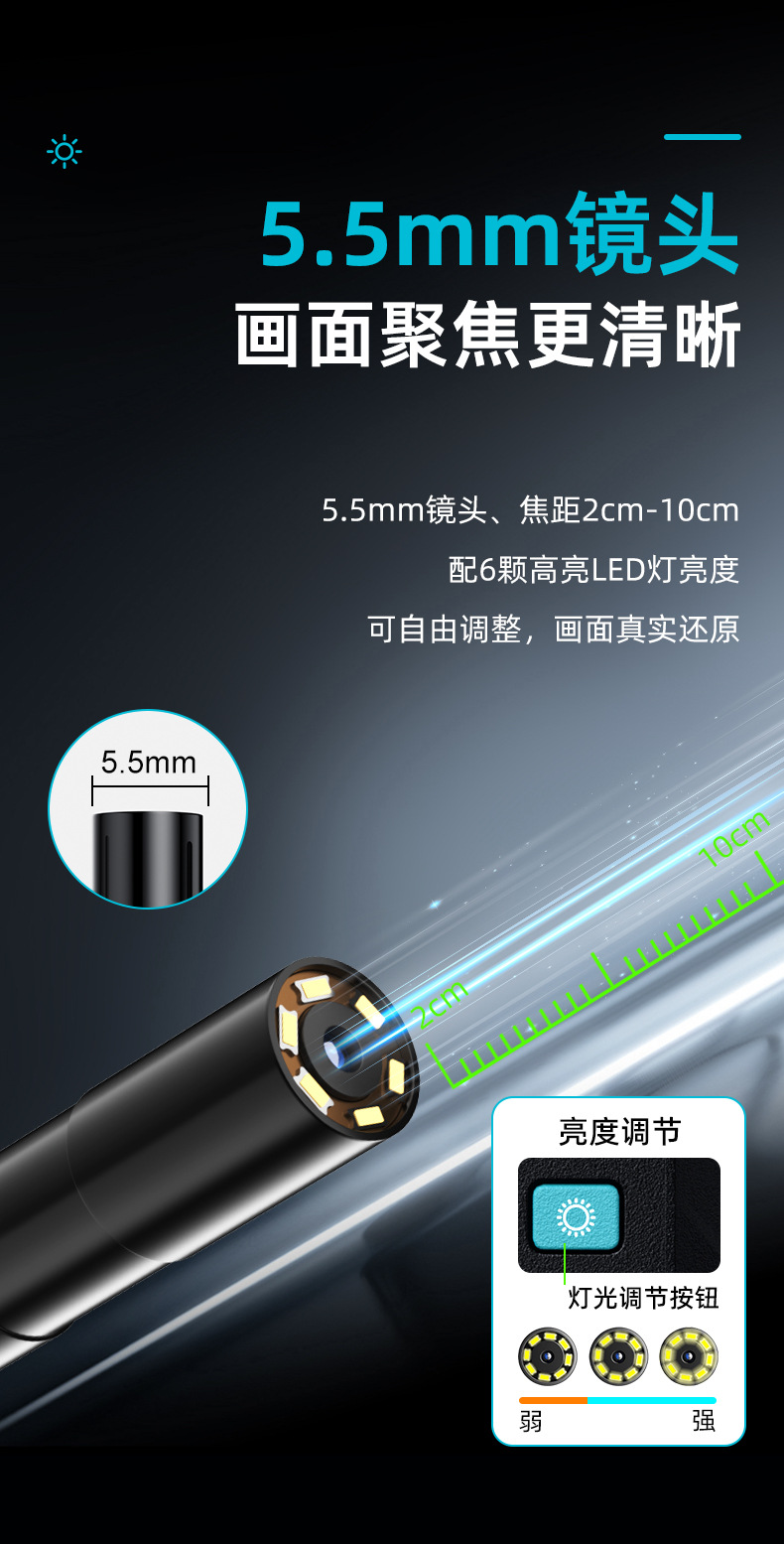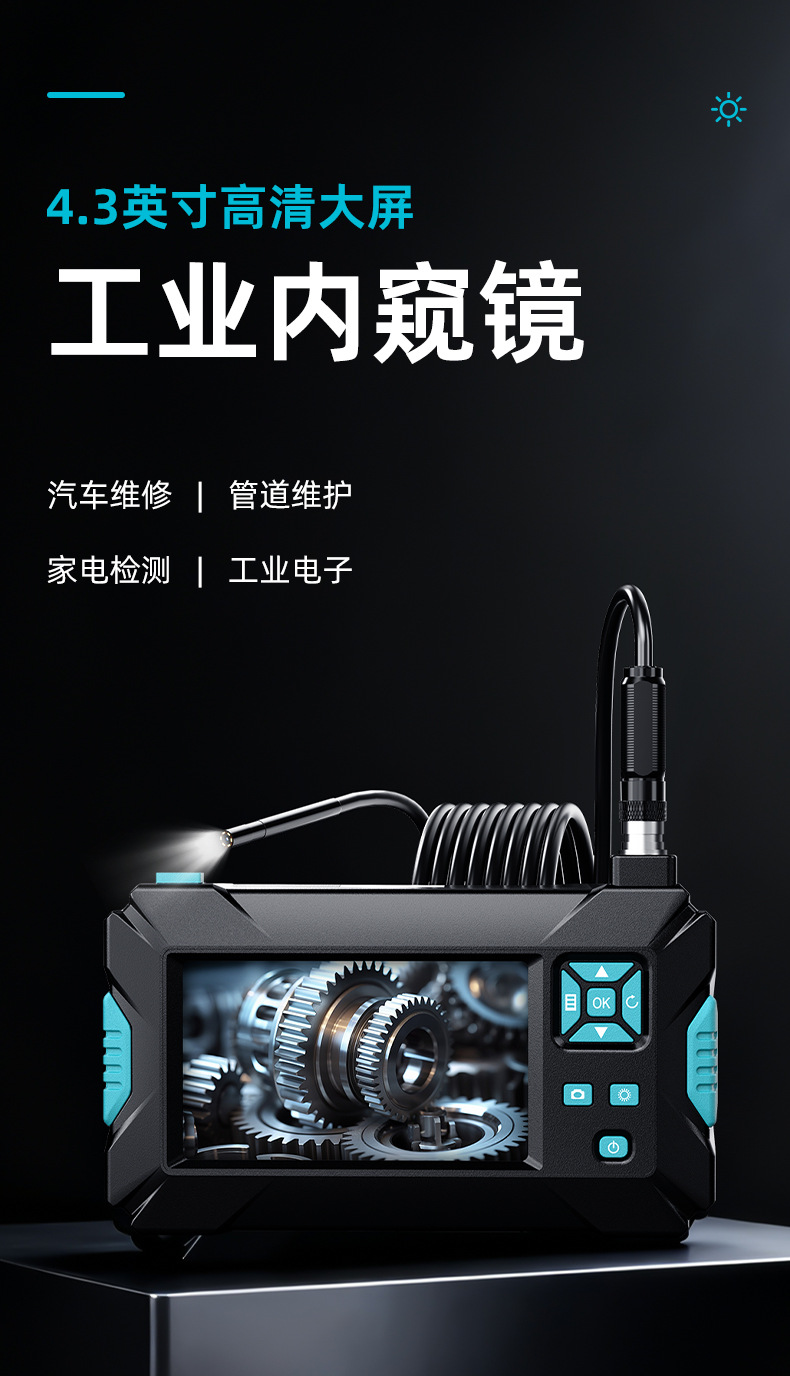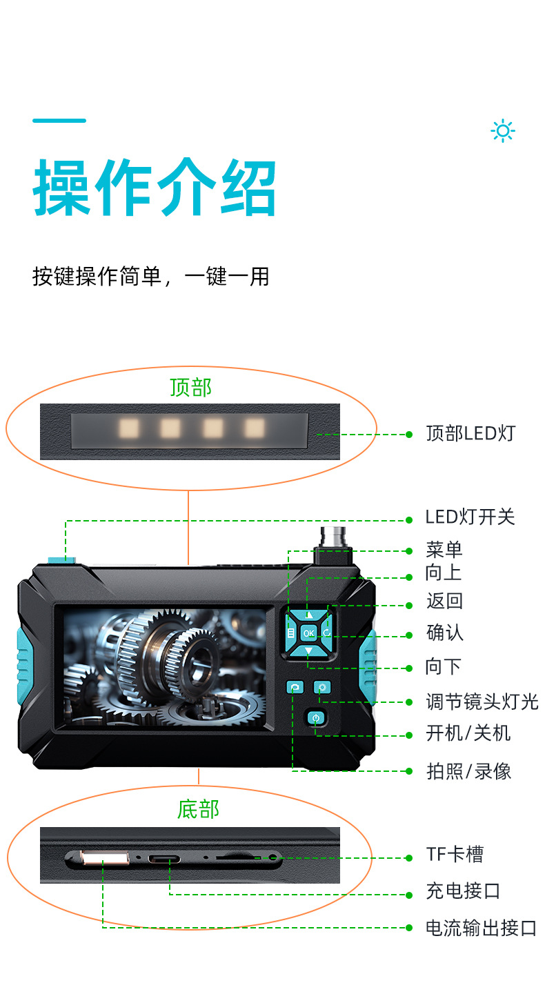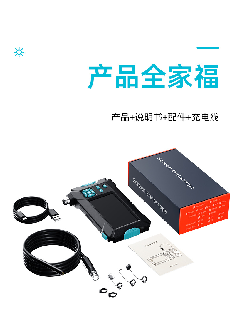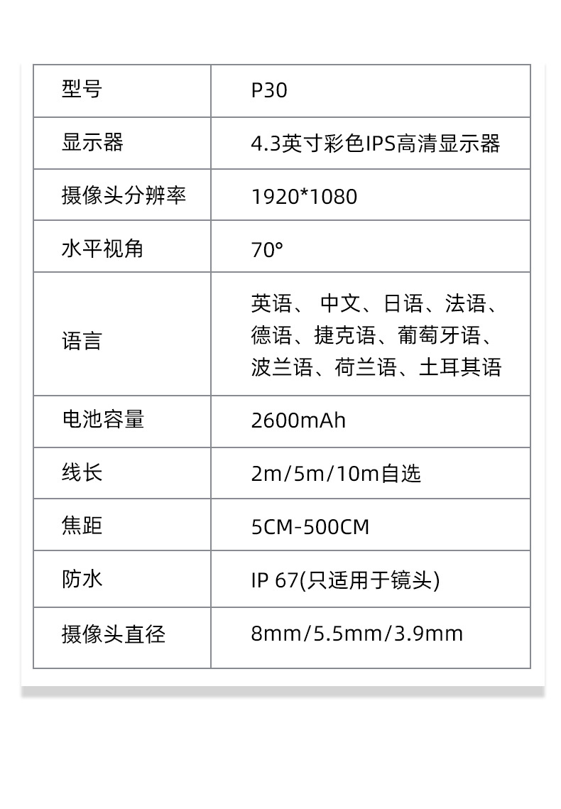 스크린이 있는 산업용 내시경 8mm 렌즈 파이프라인 카메라 감지기 투시경 방수 IP67 고화질 카메라