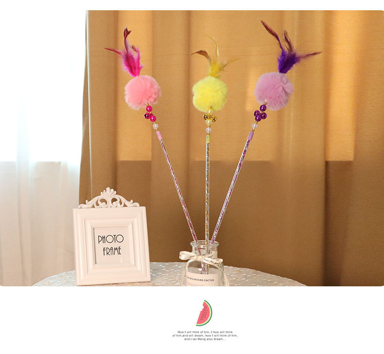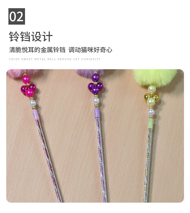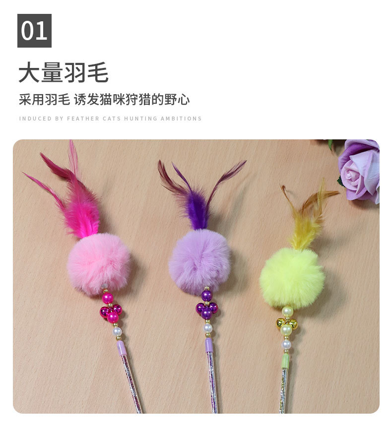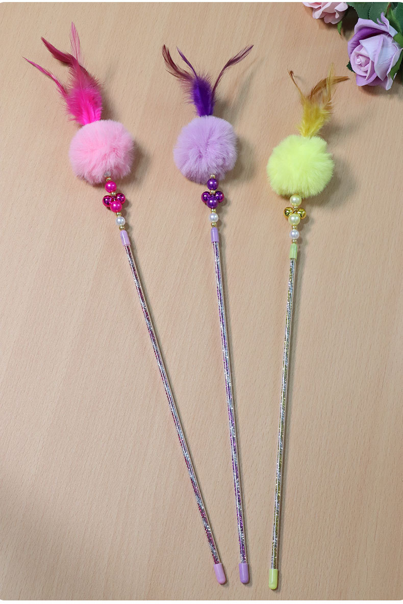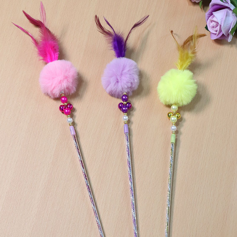 여러 가지 빛깔의 애완 동물 고양이 용품 고양이 요정 스틱 깃털 벨 진주 고양이 요정 스틱 고양이 장난감 재고 도매