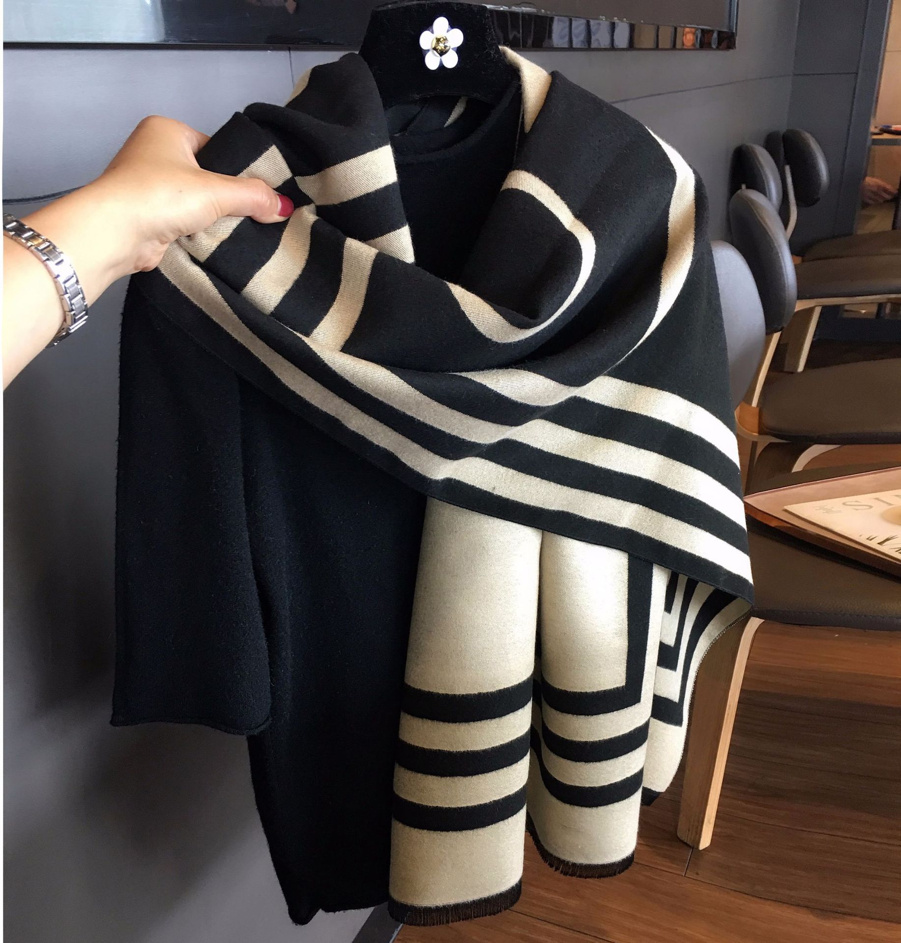 활 양면 스카프 여성용 가을과 겨울 한국식 올 매치 캐시미어 대형 숄 외부 이중 목적 따뜻한 두꺼운 스타일