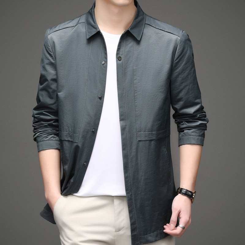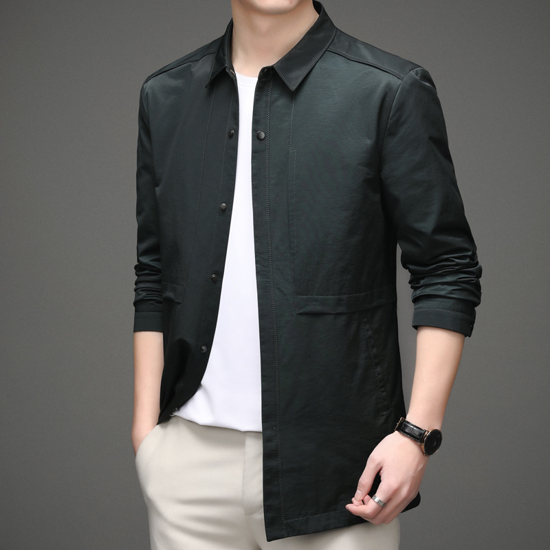 남자 윈드 브레이커 중간 길이 얇은 중년 비즈니스 캐주얼 라펠 코트 봄과 가을 유행 아빠 재킷