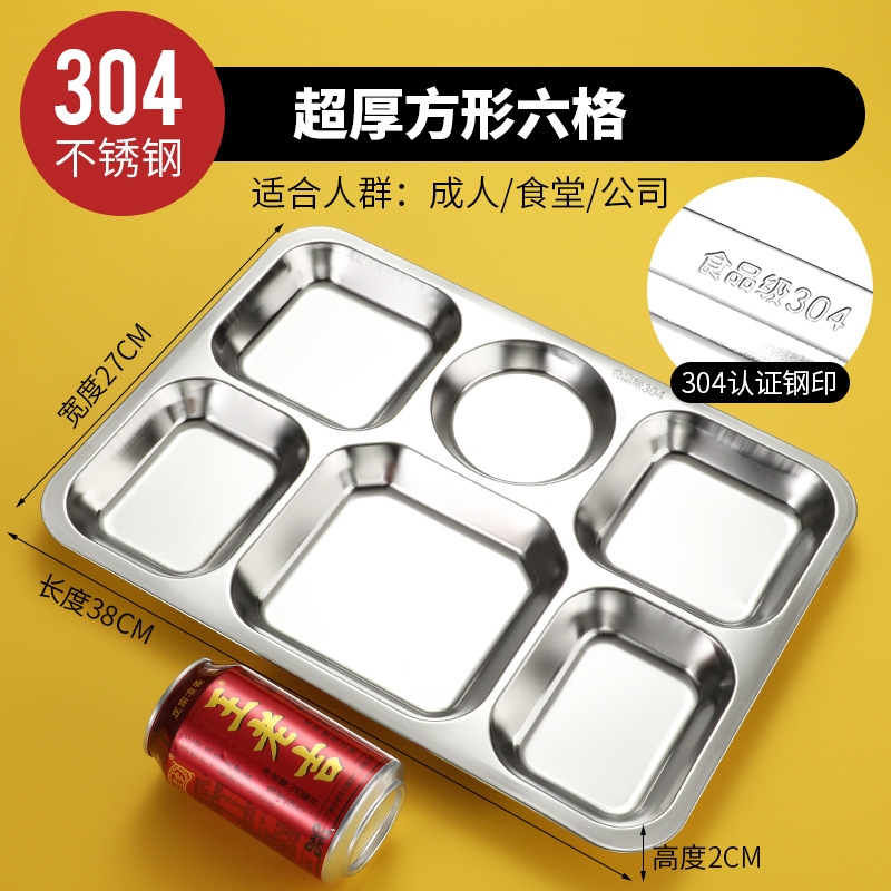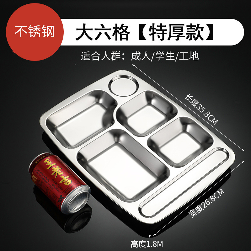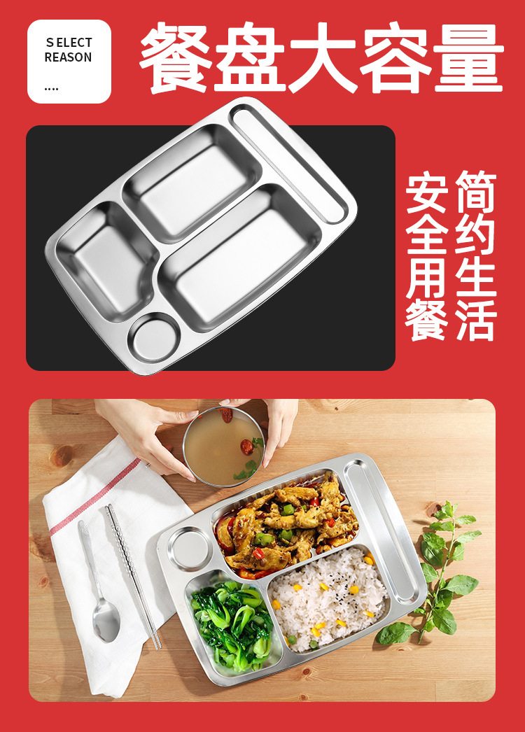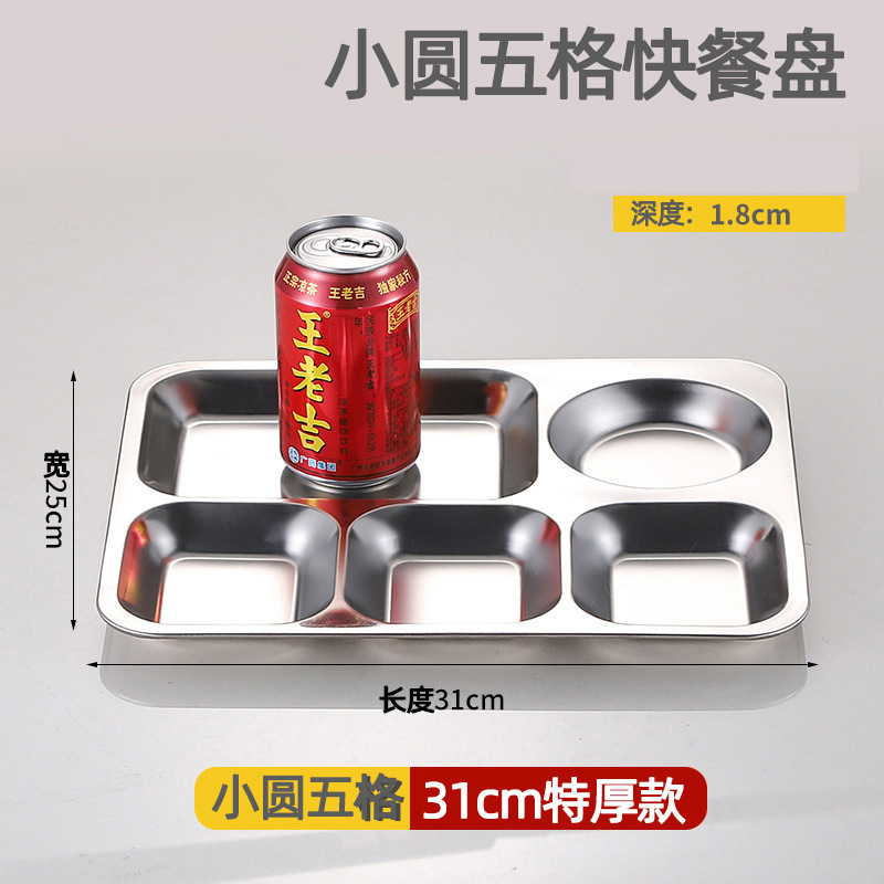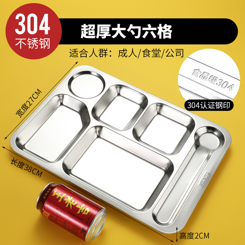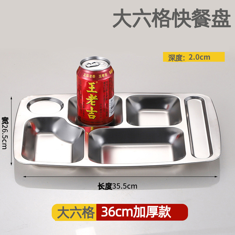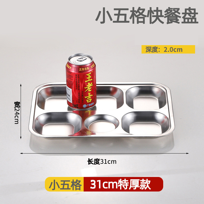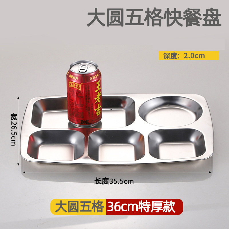 디너 플레이트 304 스테인레스 스틸 스쿨 매점 5 개 또는 6 개의 패널 분할 쌀 플레이트 성인 학생 두꺼운 스테인레스 스틸 패스트 푸드 플레이트