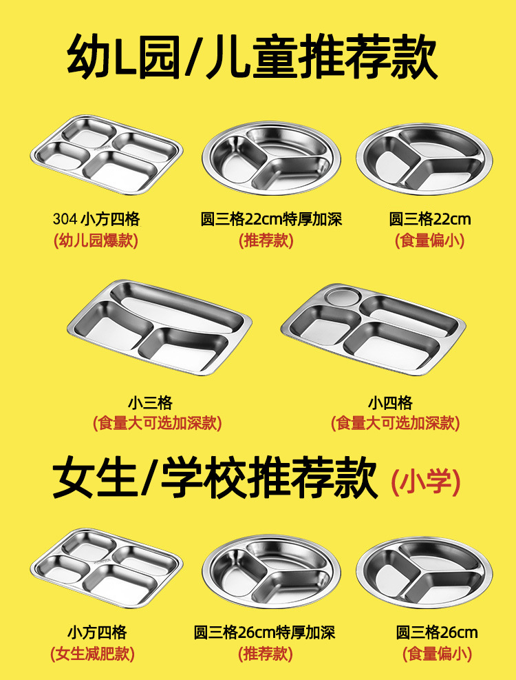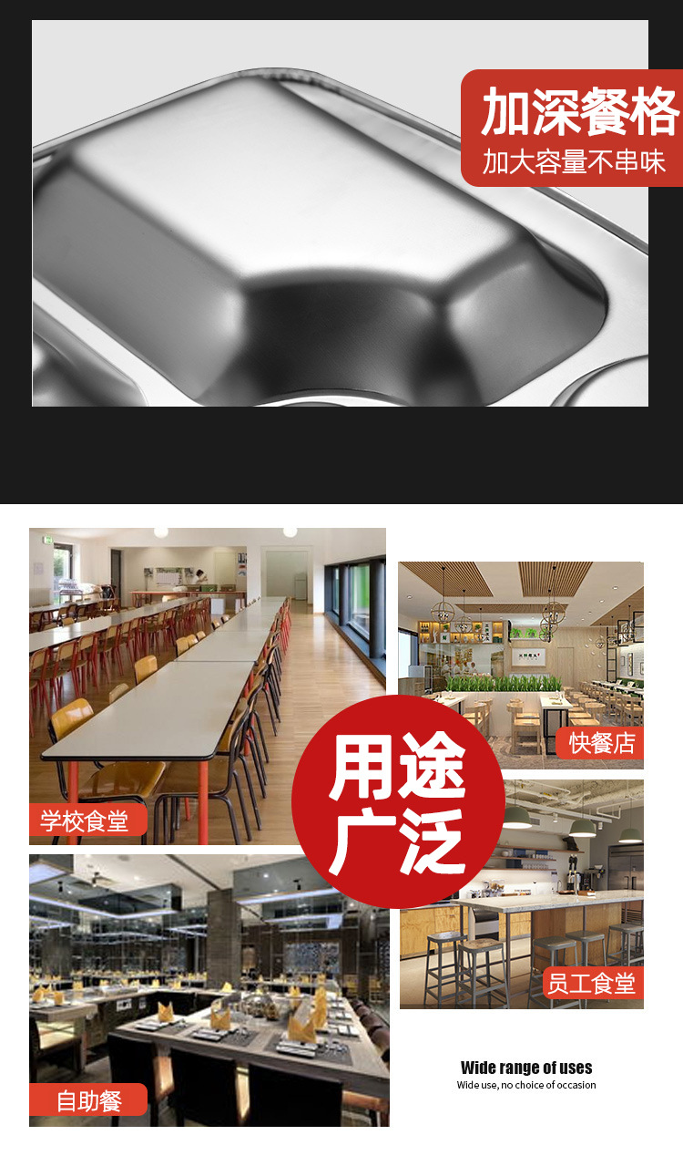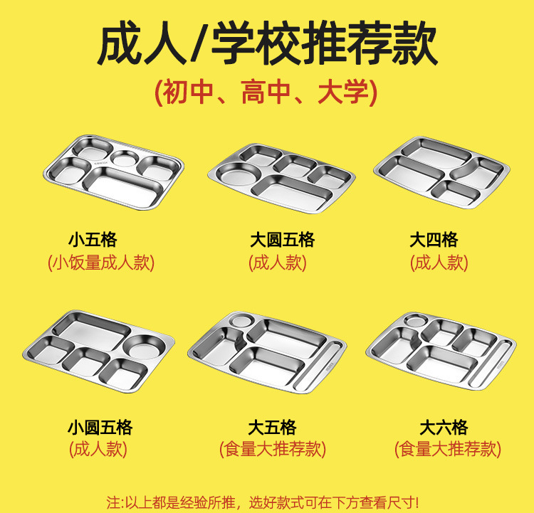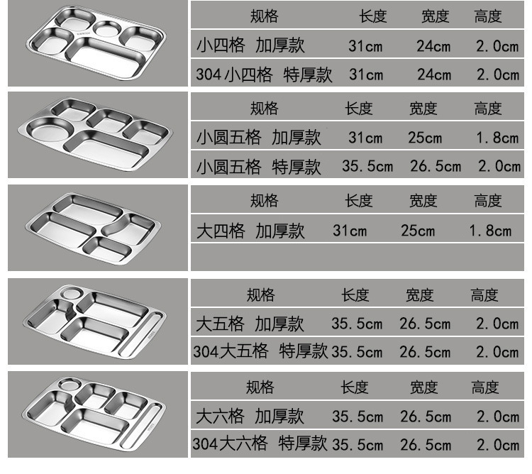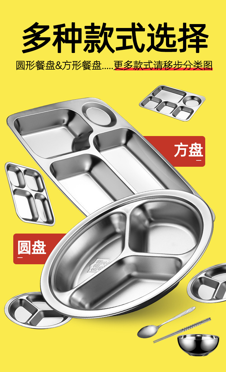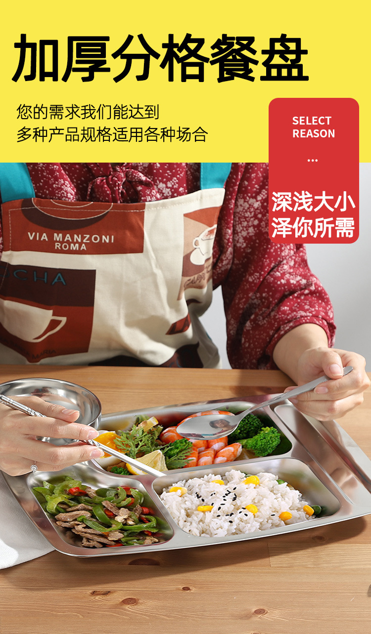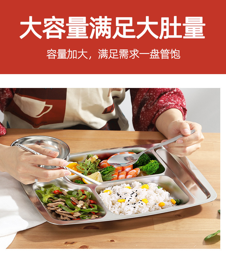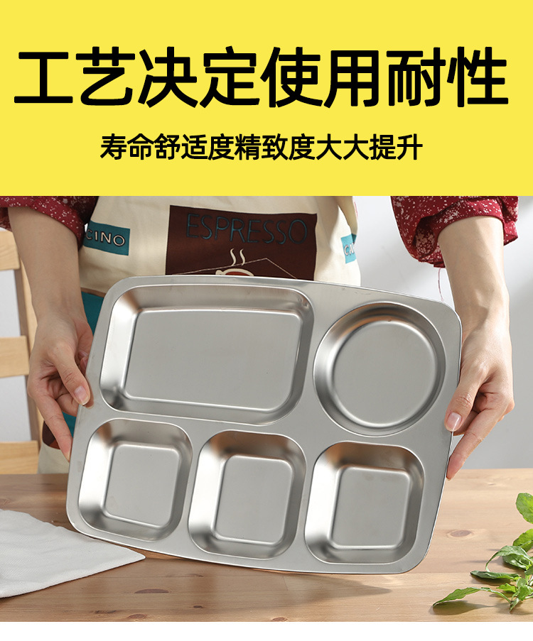 디너 플레이트 304 스테인레스 스틸 스쿨 매점 5 개 또는 6 개의 패널 분할 쌀 플레이트 성인 학생 두꺼운 스테인레스 스틸 패스트 푸드 플레이트