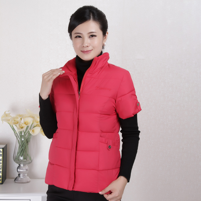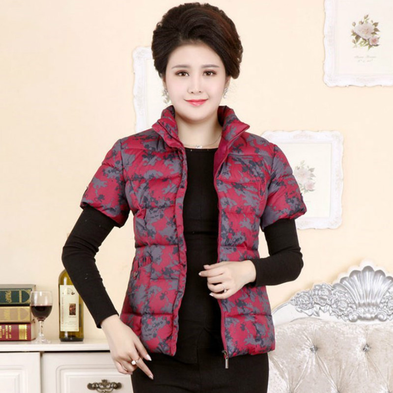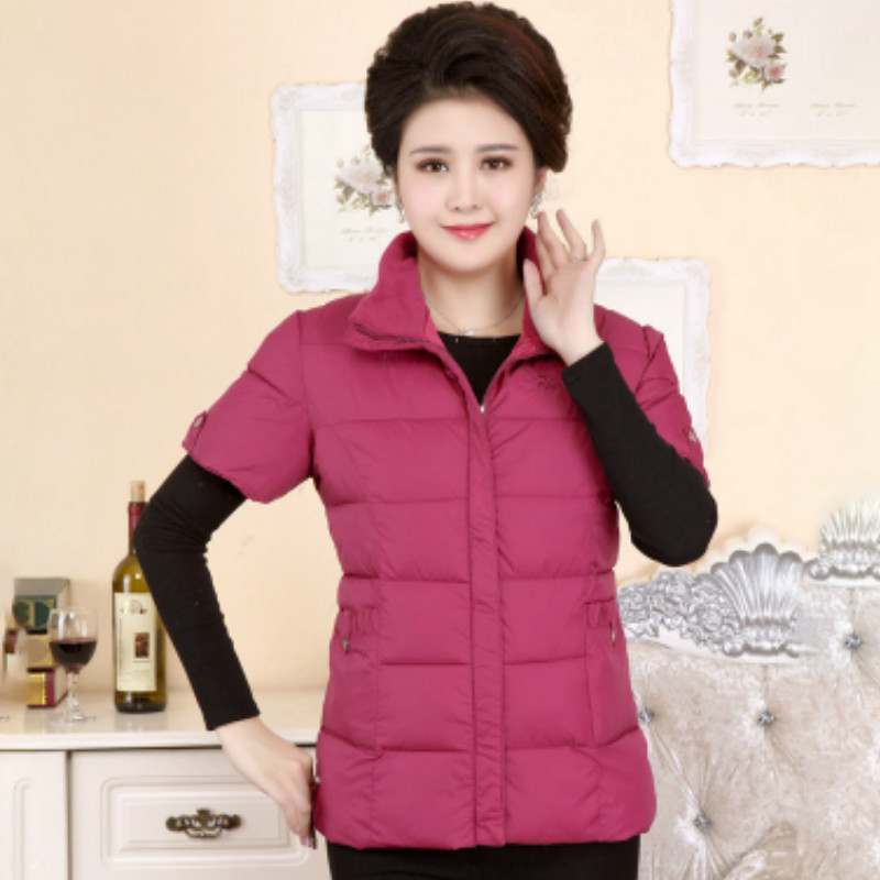 중년 및 노인 다운 코튼 패딩 재킷 반팔 코트 중년 어머니의 반팔 조끼 따뜻한 조끼 가을과 겨울 여성 조끼