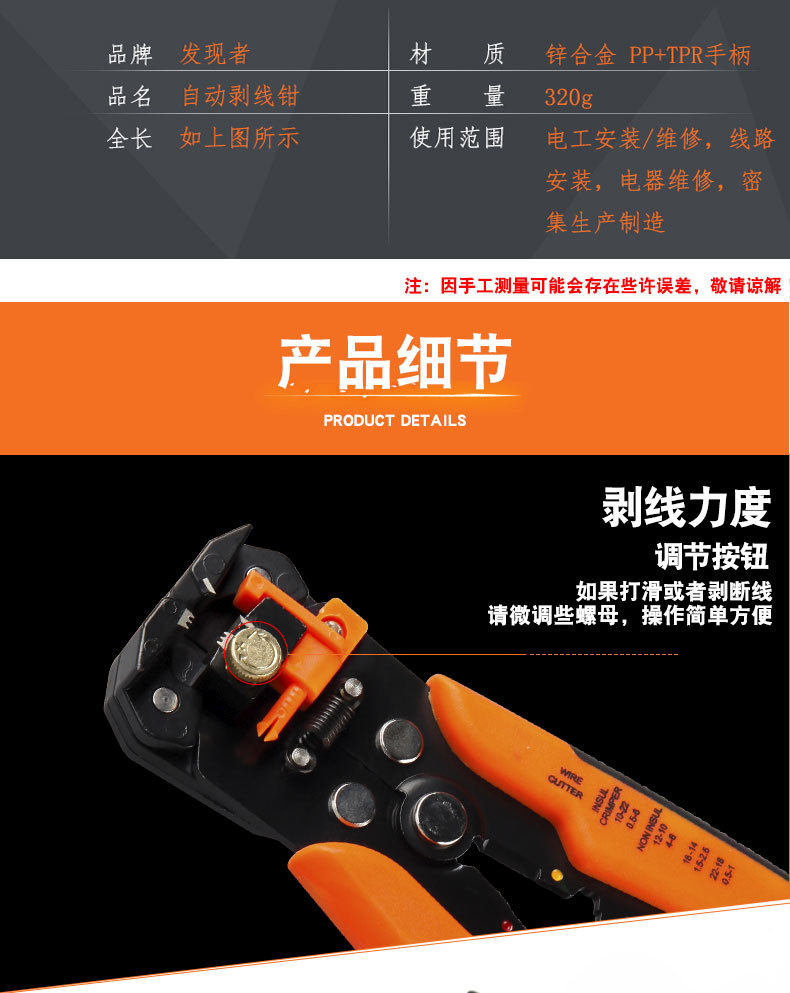 디스커버러 하드웨어 도구 8 인치 자동 와이어 스트리핑 플라이어 도매 와이어 플라이어 배선 수동 압착 플라이어 다목적 플라이어스토어 가기