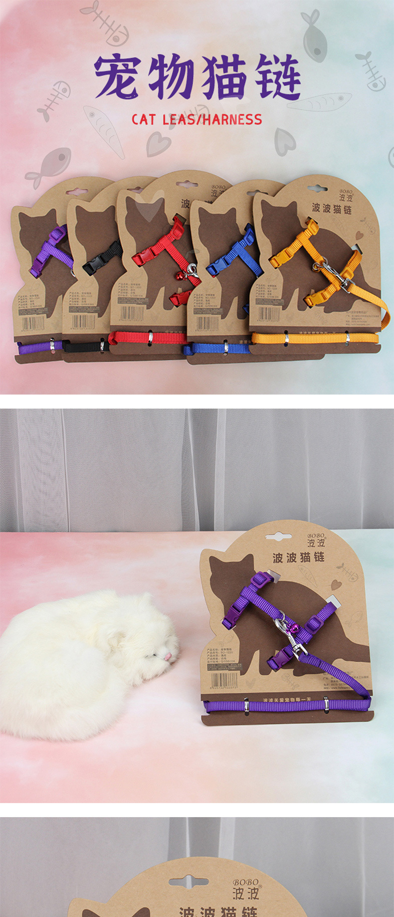 애완 동물 고양이 체인 고양이 고리 견인 로프 고양이 벨 칼라 조정 가능한 애완 동물 가슴 스트랩 고양이 로프 도매