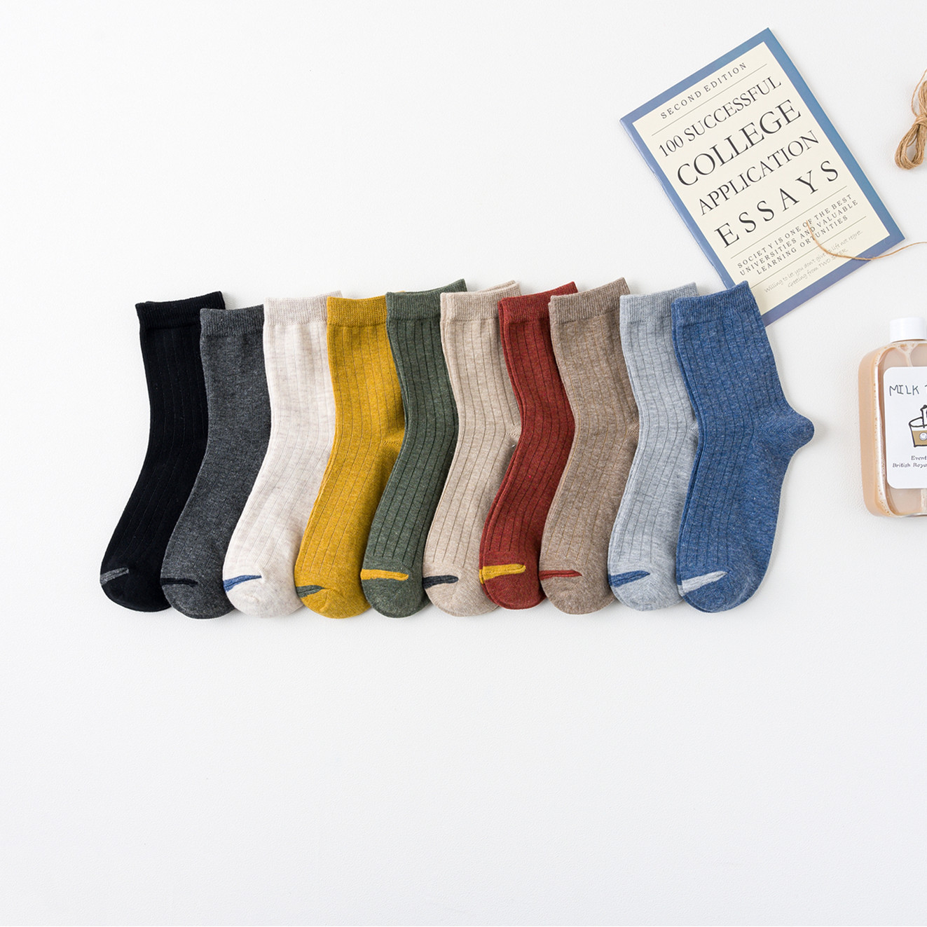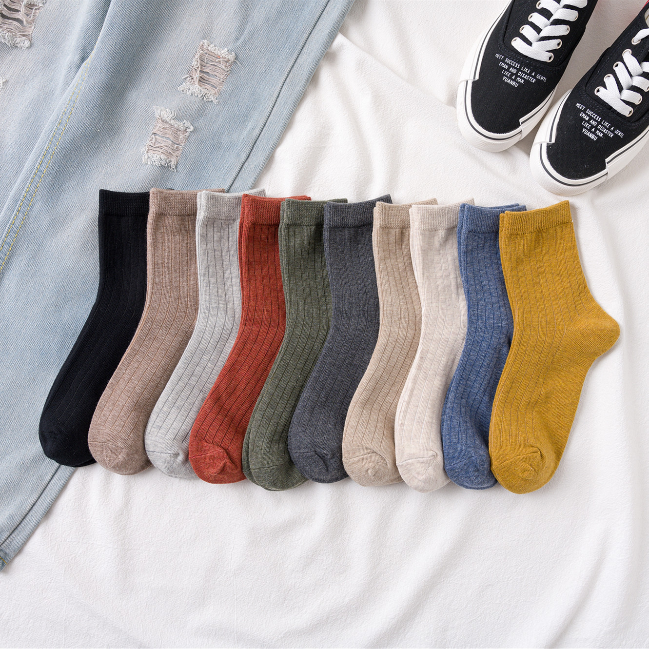 새로운 사계절 양말 여자의 일본식 단색 면 여자 양말 긴 튜브 스트립 양말 남자 봄 여름 커플 남자 양말스토어 가기