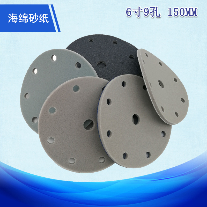 6인치 9홀 원형 디스크 벨벳 스폰지 사포 연마 광택 자가 접착식 벨벳 사포 금속 디버링 스폰지 사포스토어 가기