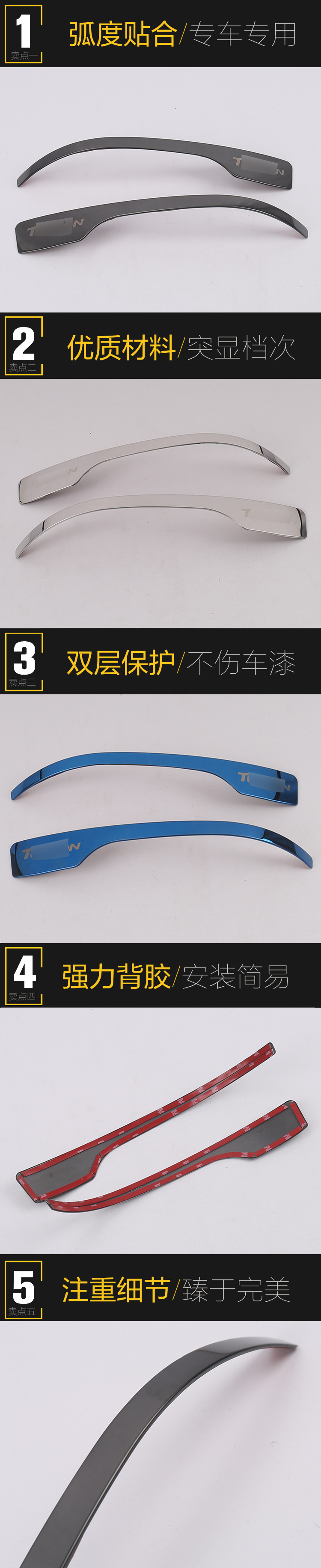 在安装前必须保持车身干燥没有灰尘,油质,蜡质,气温在10度以下务必给车身和产品上的双面胶胶加温。