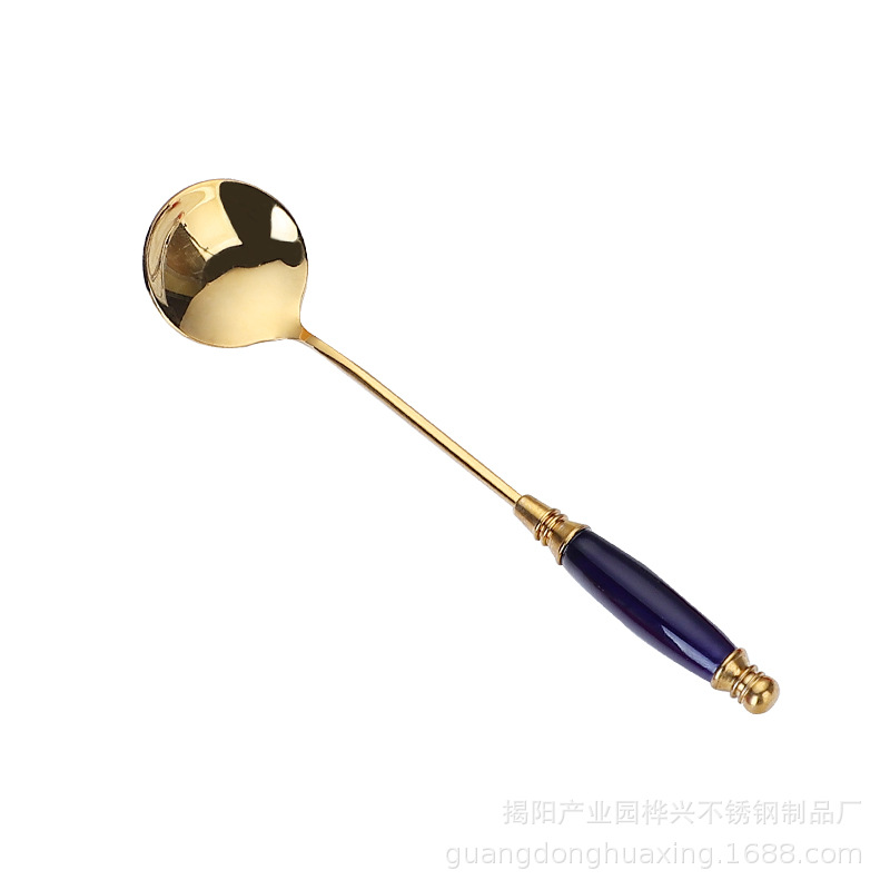 유럽식 스테인레스 스틸 커피 스푼 한국 창조적 인 세라믹 긴 손잡이 믹싱 스푼 금도금 디저트 스푼 선물스토어 가기