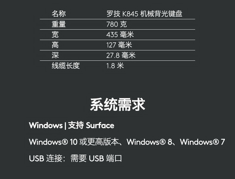 Logitech/Logicool K845 유선 기계식 키보드 사무실 게임 알루미늄 패널 흑백 백라이트 키보드스토어 가기