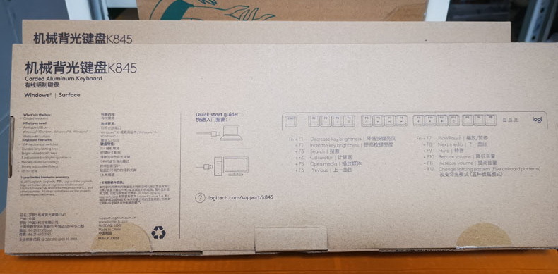 Logitech/Logicool K845 유선 기계식 키보드 사무실 게임 알루미늄 패널 흑백 백라이트 키보드