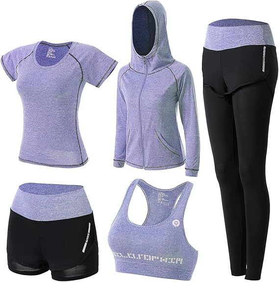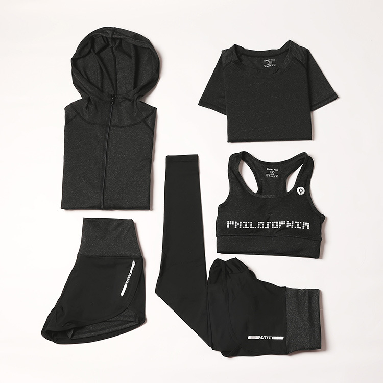 2019 새로운 요가 의류 세트 쉐이크 사운드 폭발 5 종 세트 슬림핏 슬리밍 속건 의류 전문 러닝 스포츠웨어