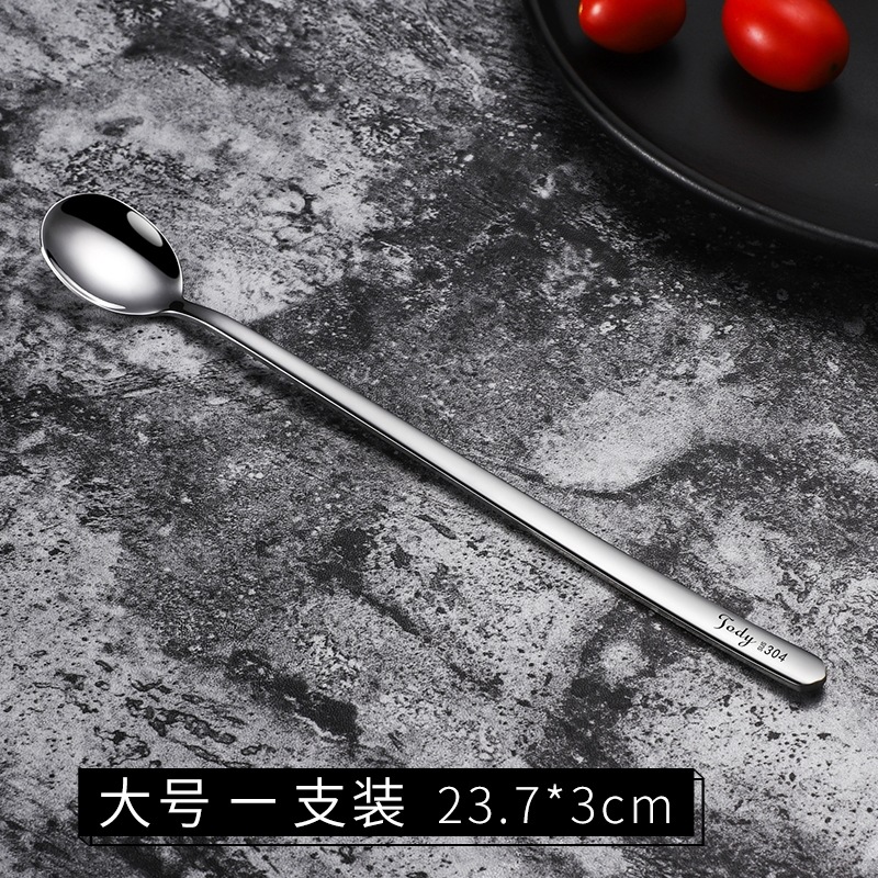 304 스테인레스 스틸 한국식 아이스 스푼 긴 손잡이 둥근 얼음 스푼 두꺼운 믹싱 스푼 커피 스푼 디저트 스푼 조미료 스푼