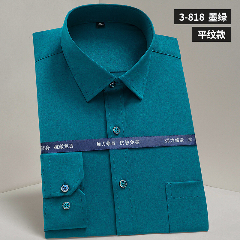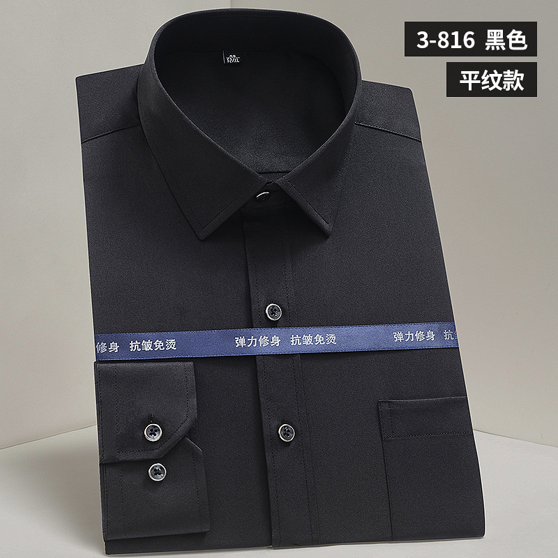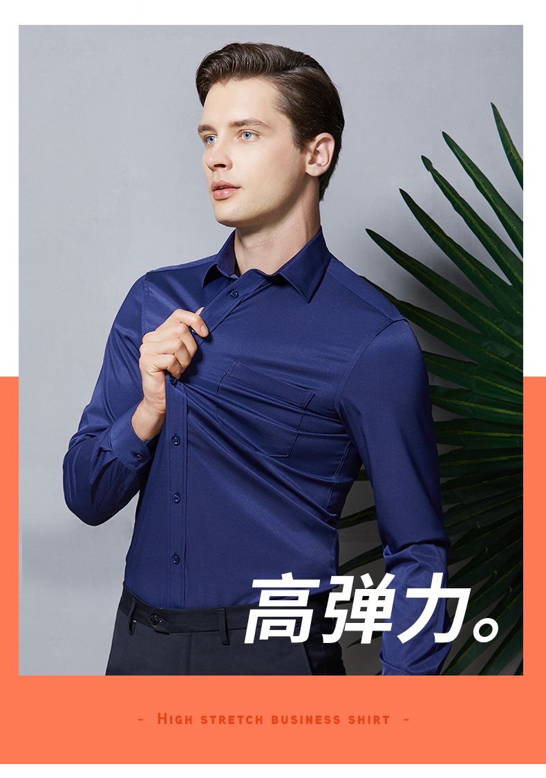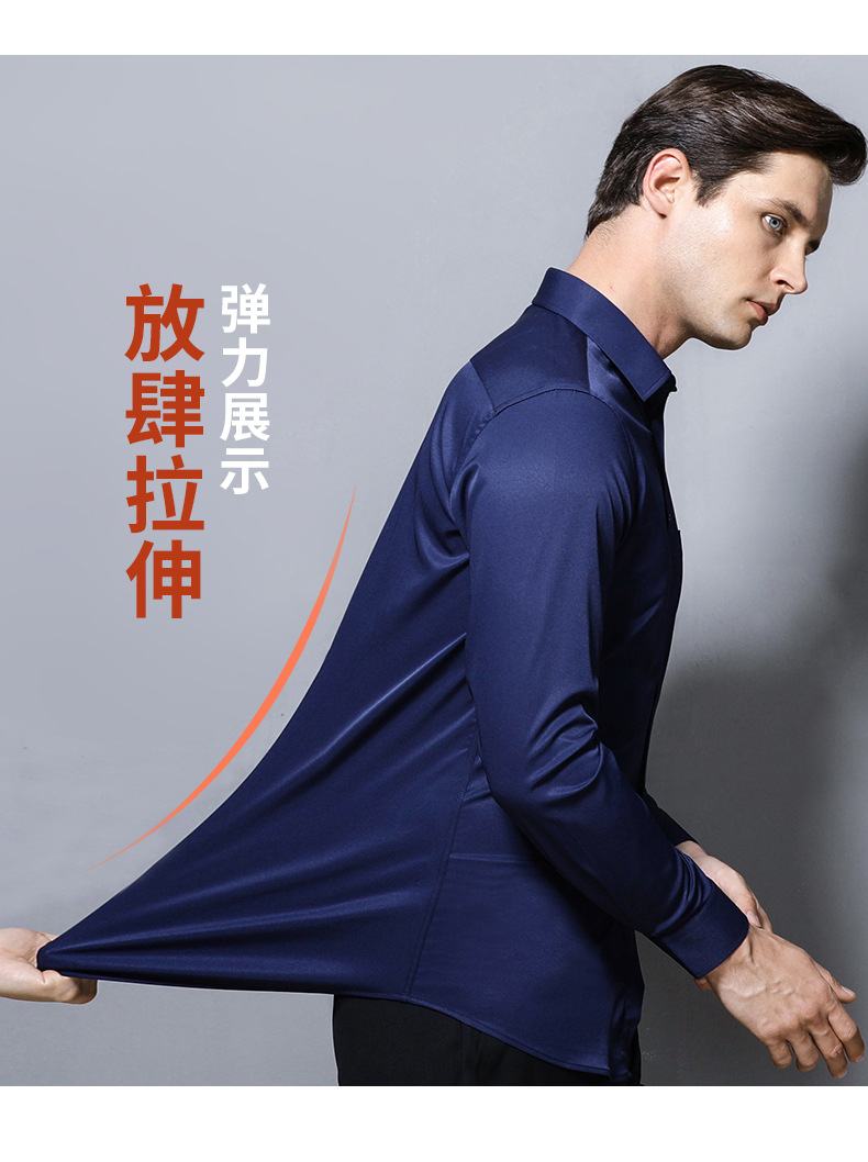 작업복 실크광택 신축성 셔츠 남성용 긴팔 정장 셔츠 주름 방지 스판덱스 단색 셔츠 로고스토어 가기