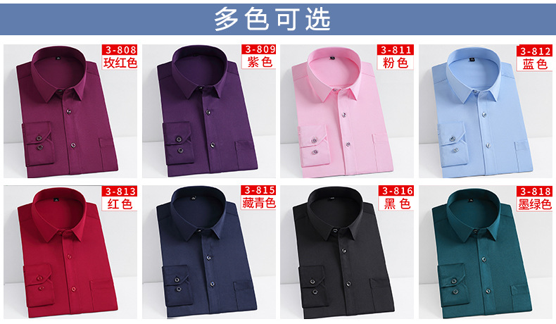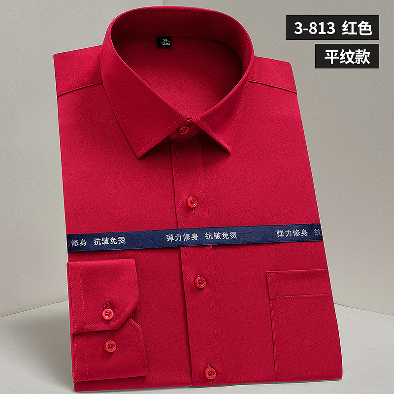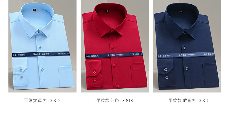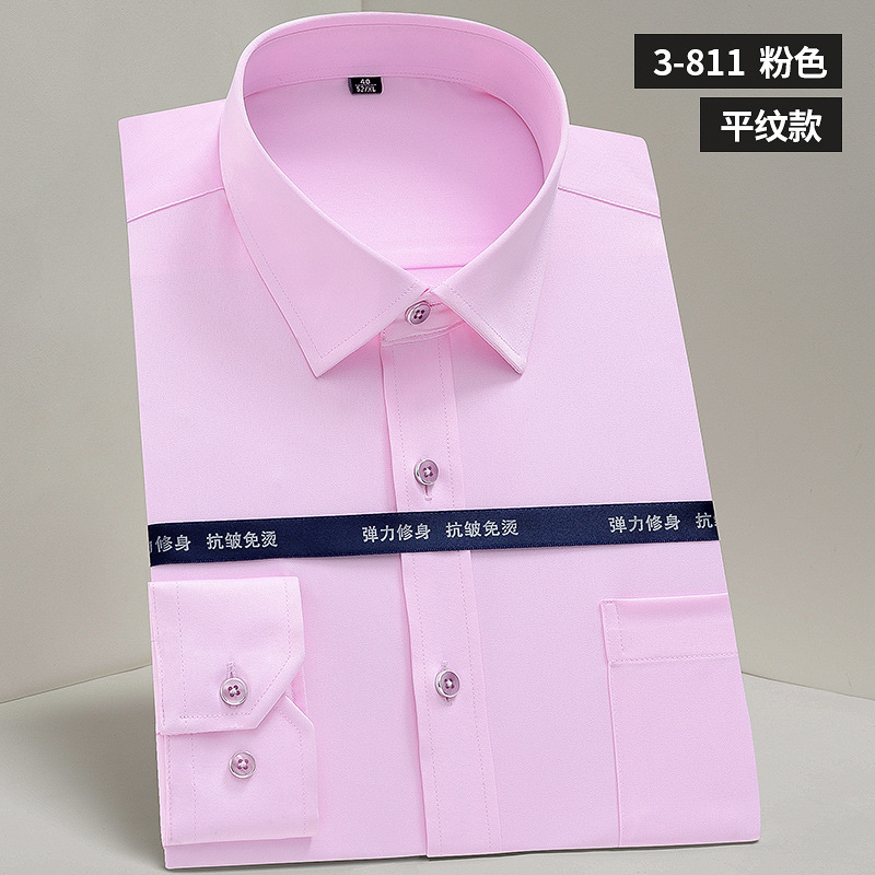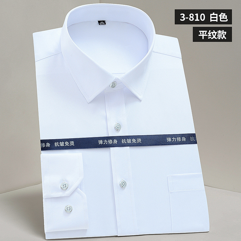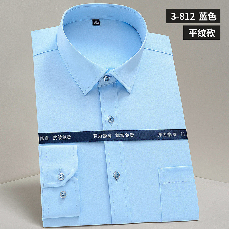 작업복 실크광택 신축성 셔츠 남성용 긴팔 정장 셔츠 주름 방지 스판덱스 단색 셔츠 로고스토어 가기