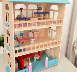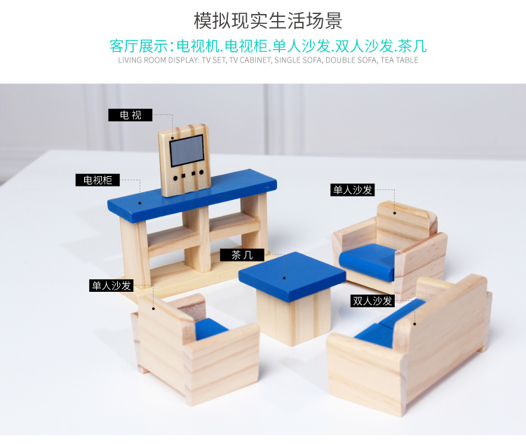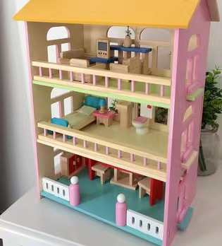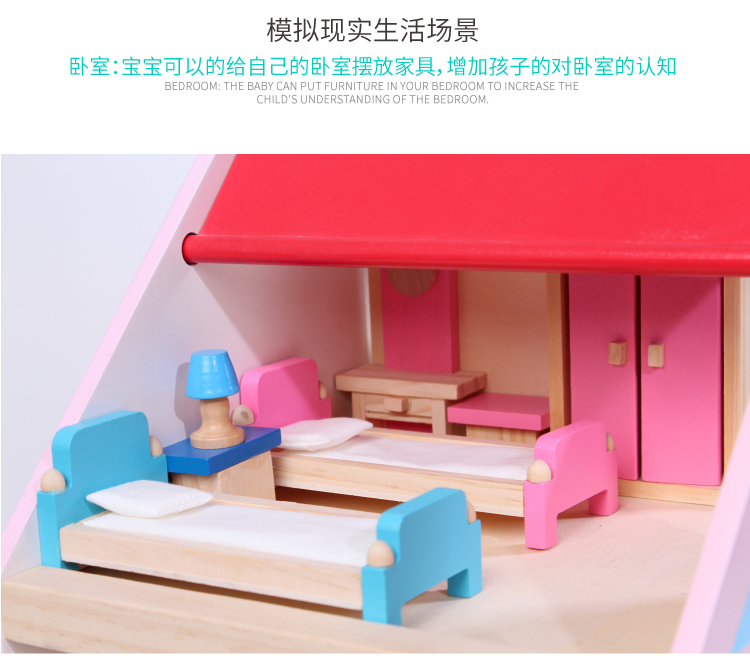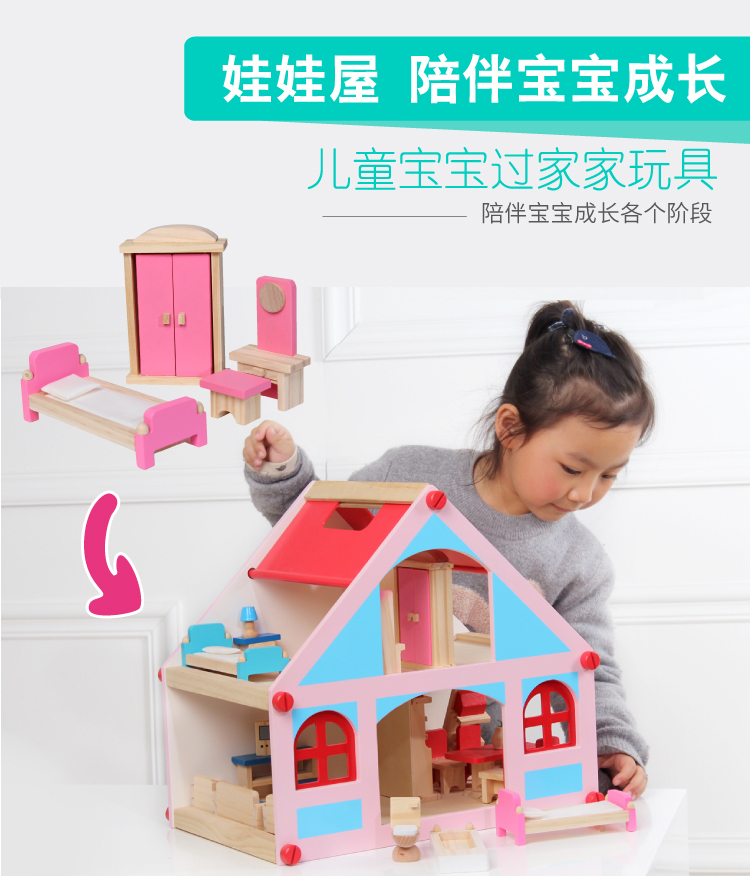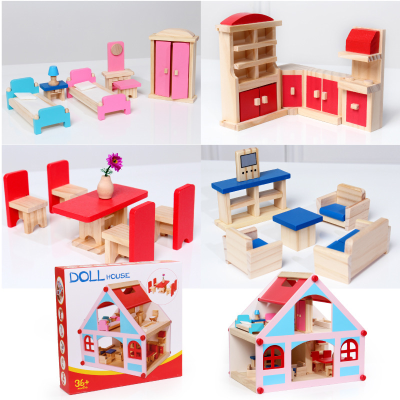 소년과 소녀 미니 하우스 코티지 룸 가구 세트 어린이 놀이 집 장난감 나무 인형 집