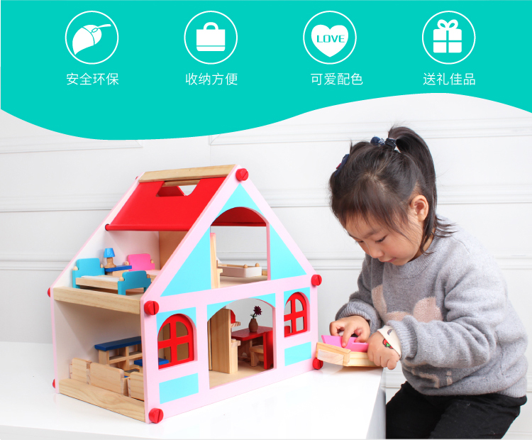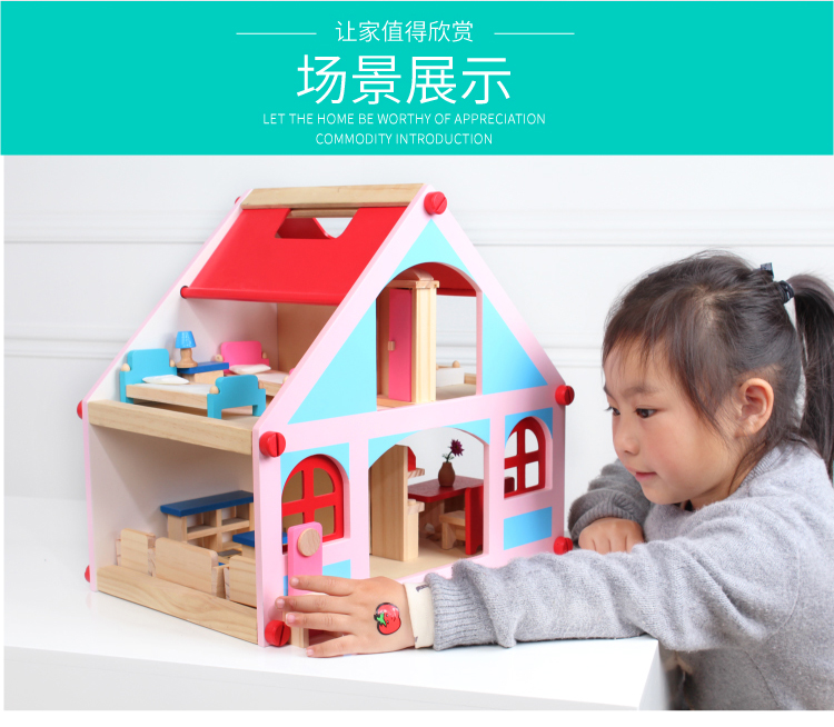 소년과 소녀 미니 하우스 코티지 룸 가구 세트 어린이 놀이 집 장난감 나무 인형 집스토어 가기