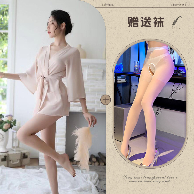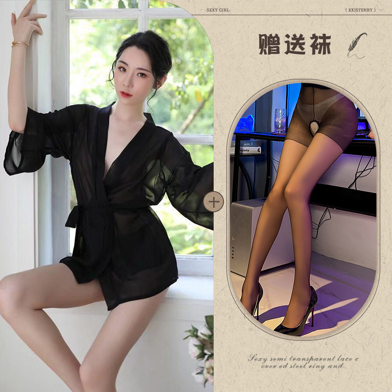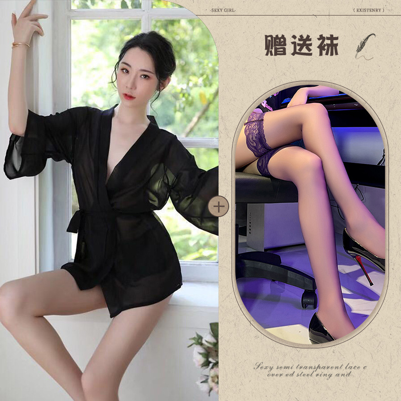 새로운 섹시한 속옷 여성의 섹시 투명 유혹 쉬폰 잠옷 짧은 목욕 가운 엉덩이 세트 머리카락의 세대