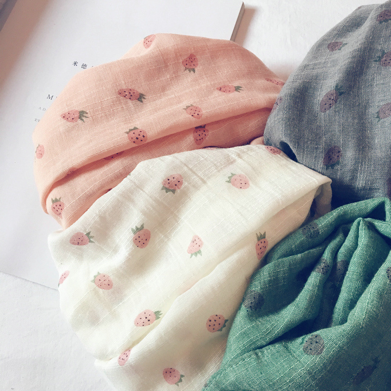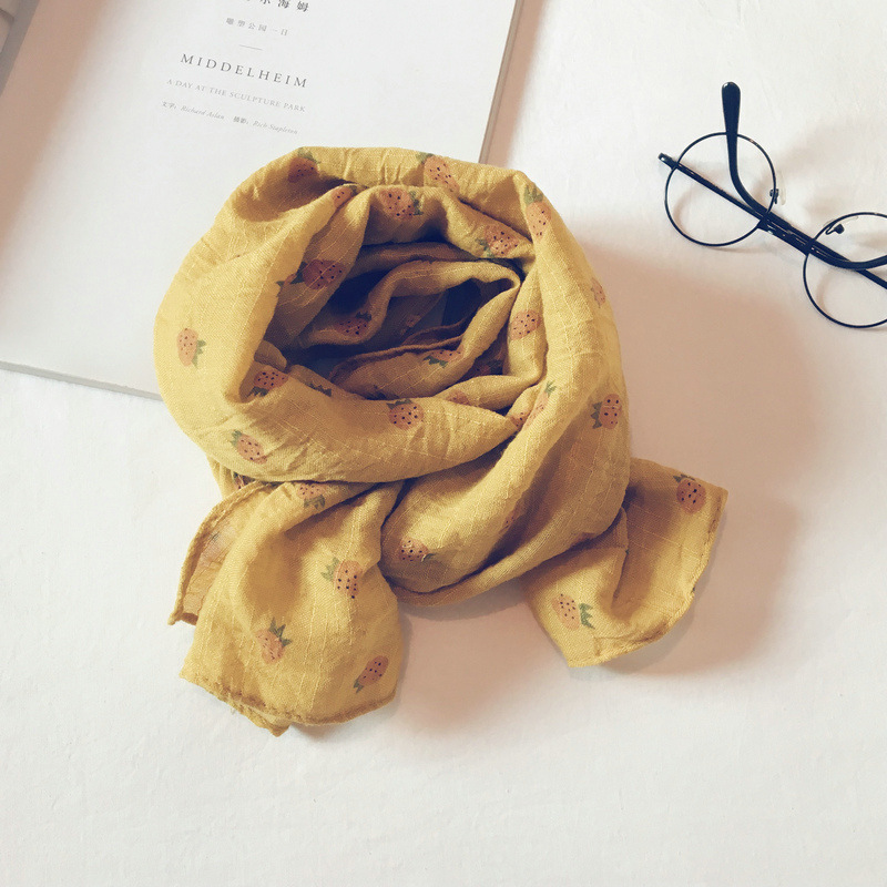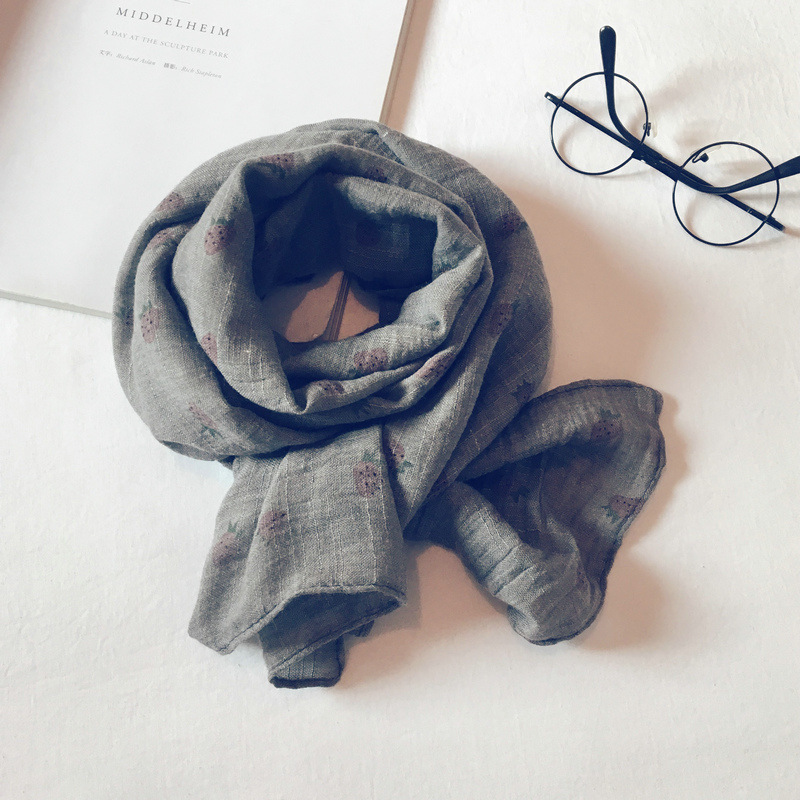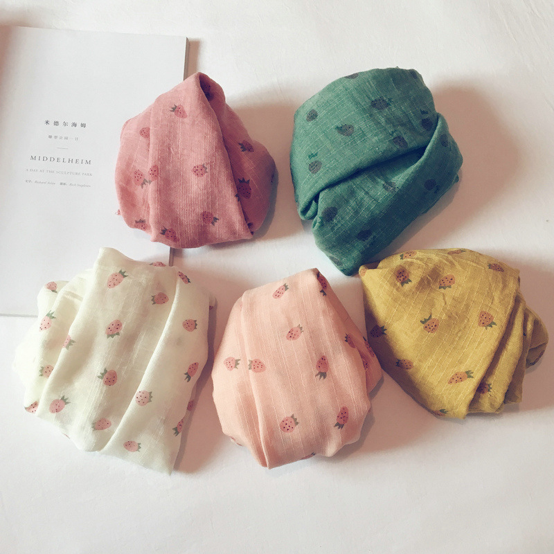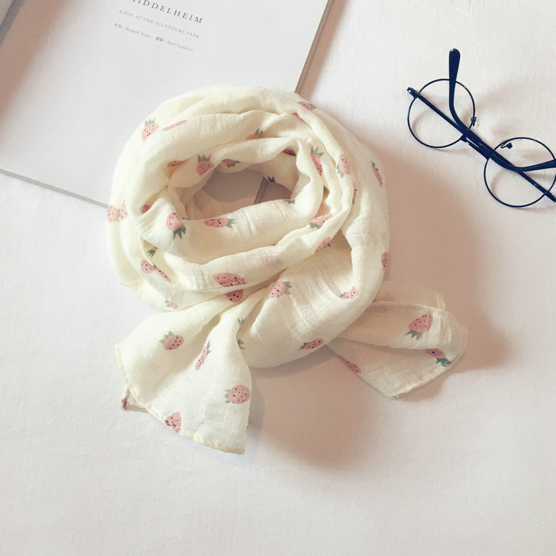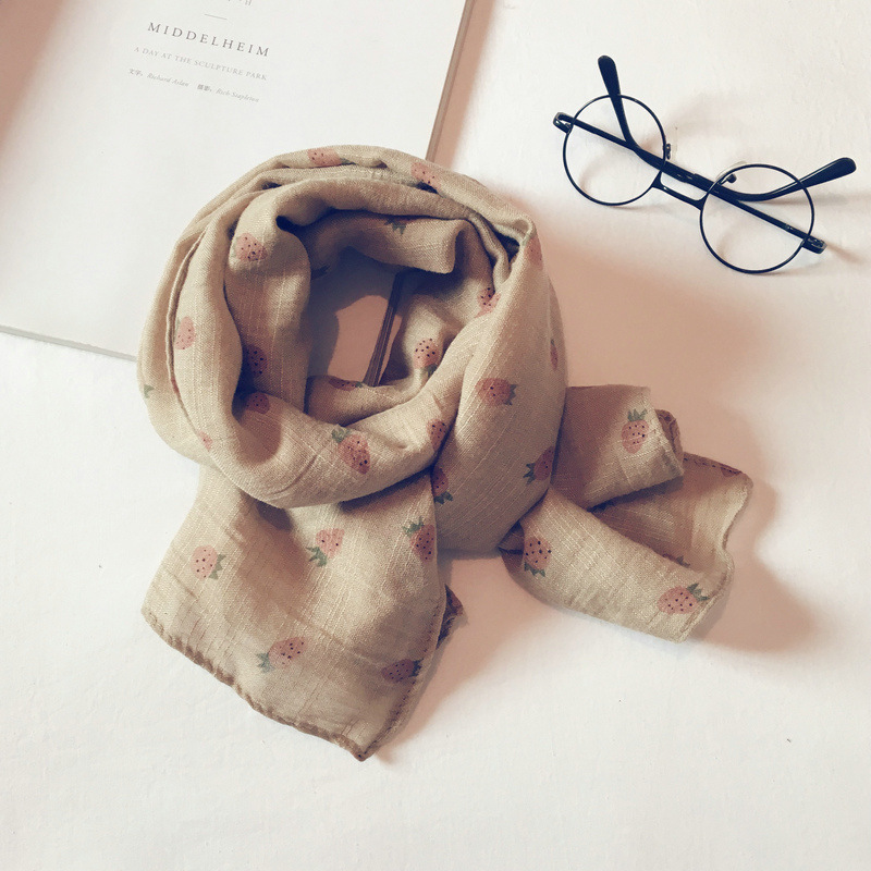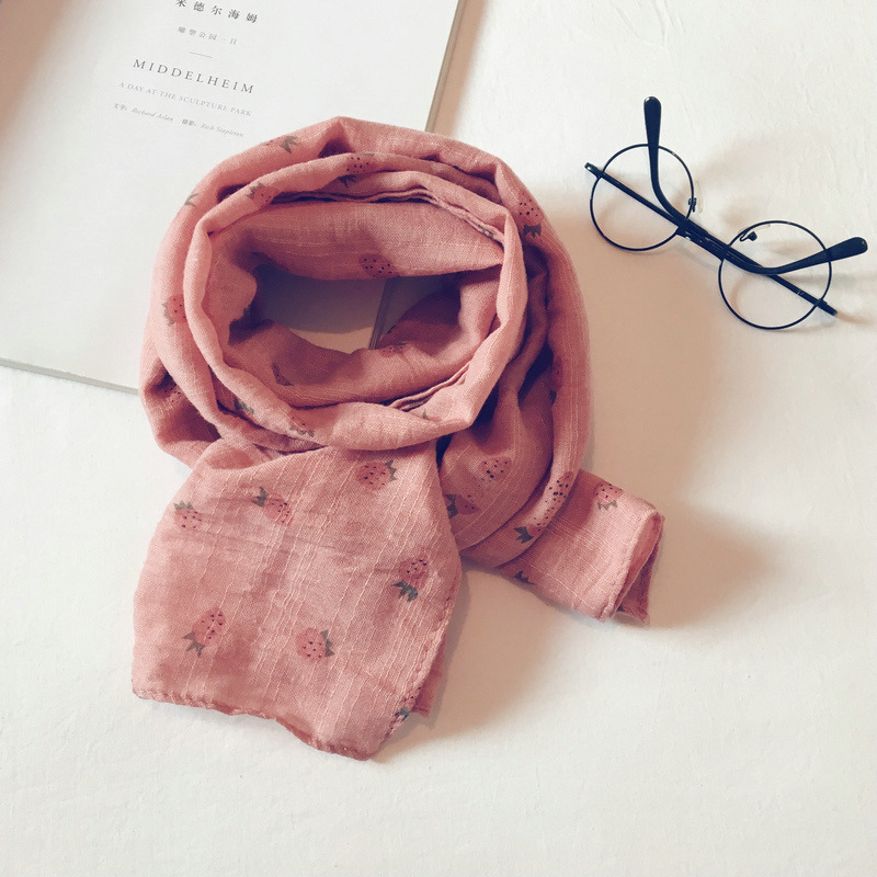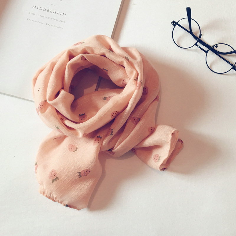 가을 얇은 인쇄 딸기 어린이 스카프 한국어 스타일 귀여운 공주 아기 스카프 남성과 여성 아기 면화와 린넨 스카프