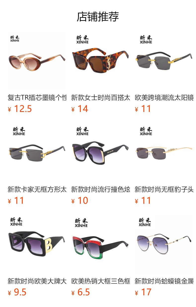 새로운 폭스 헤드 패션 폭발 여성용 모든 매치 선글라스 메탈 프레임리스 트림 선글라스 우아한 선글라스스토어 가기