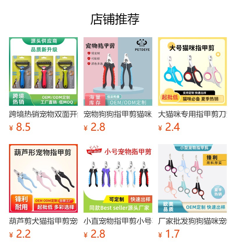 애완동물 손톱깎이, 애완동물 가위, 애완동물 손톱 청소 도구, 연마 파일, 개와 고양이 손톱깎이 제조업체스토어 가기