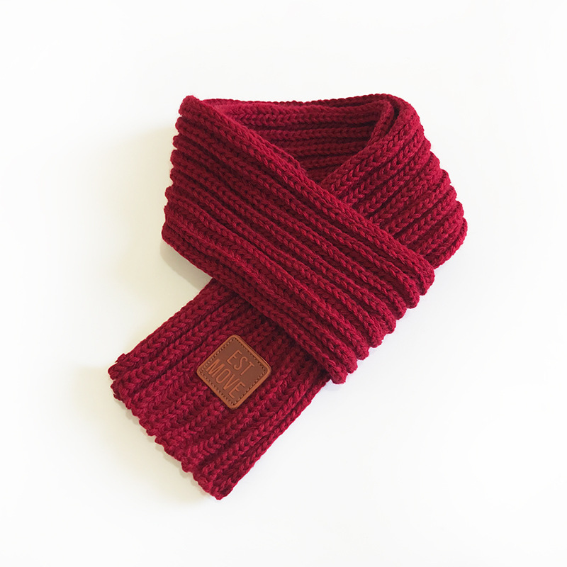 고양이 형제 성인 작은 스카프 니트 스카프 가을과 겨울 새로운 패션 심플 트렌드 여성용 짧은 가죽 라벨 스카프스토어 가기