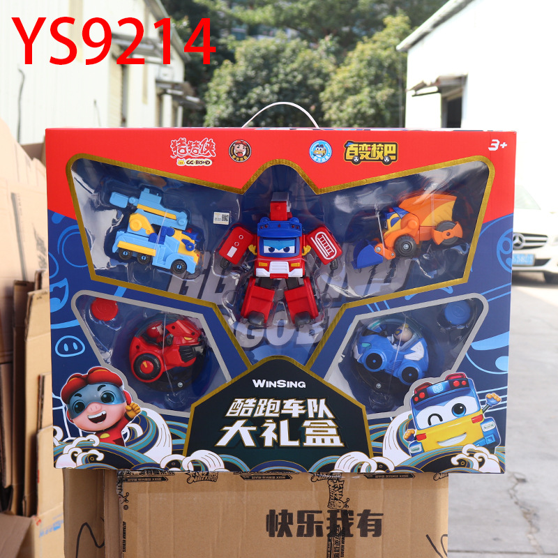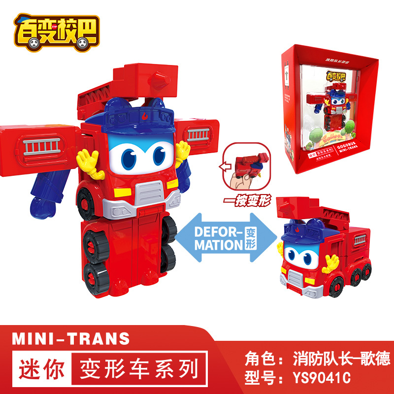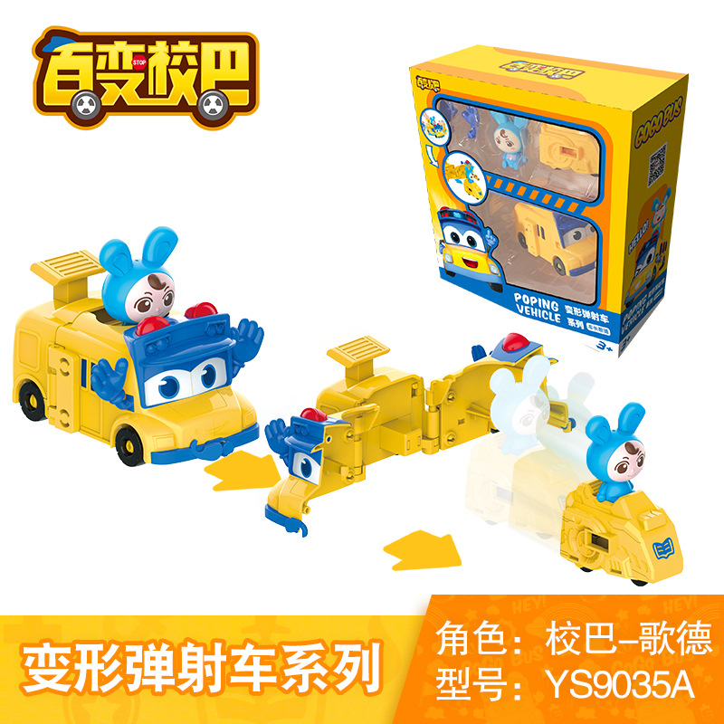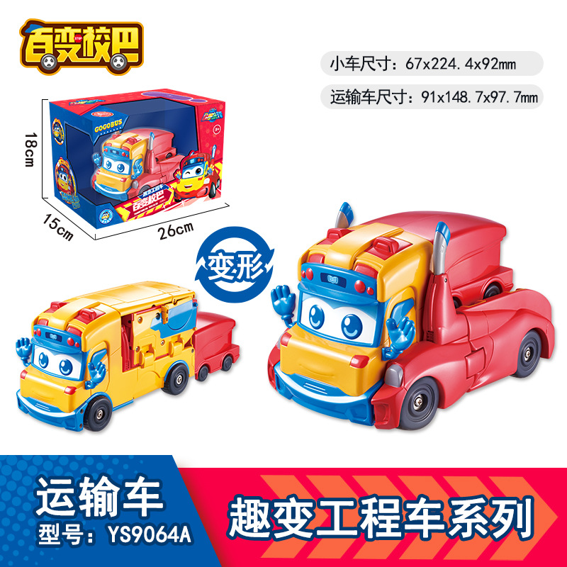 돼지 남자 Q 버전 버라이어티 스쿨 버스 어린이 변형 로봇 괴테 구급차 소녀의 자동차 장난감 정품