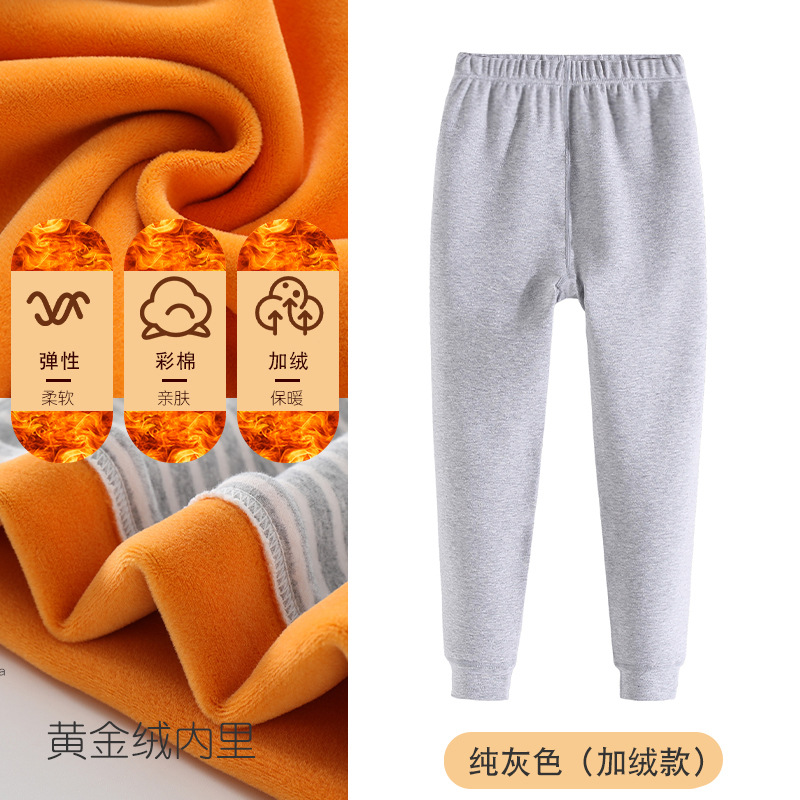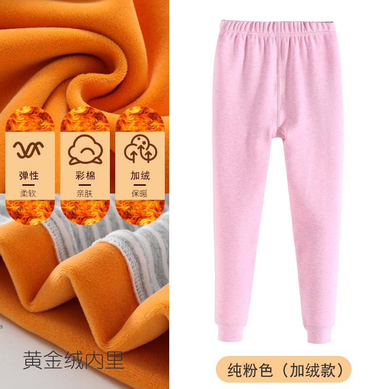 2025 남아용 두꺼운 컬러 코튼 가을/겨울 바지, 여아용 스트라이프 레깅스, 중대형 어린이용 단색 홈웨어 보온 바지스토어 가기