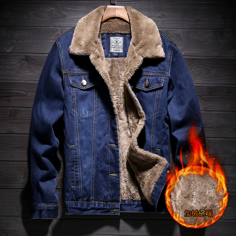 겨울 남성용 젊고 멋진 기모 안감 두꺼운 데님 재킷 한국 스타일 슬림핏 상의 보온 코트 캐주얼하고 다용도