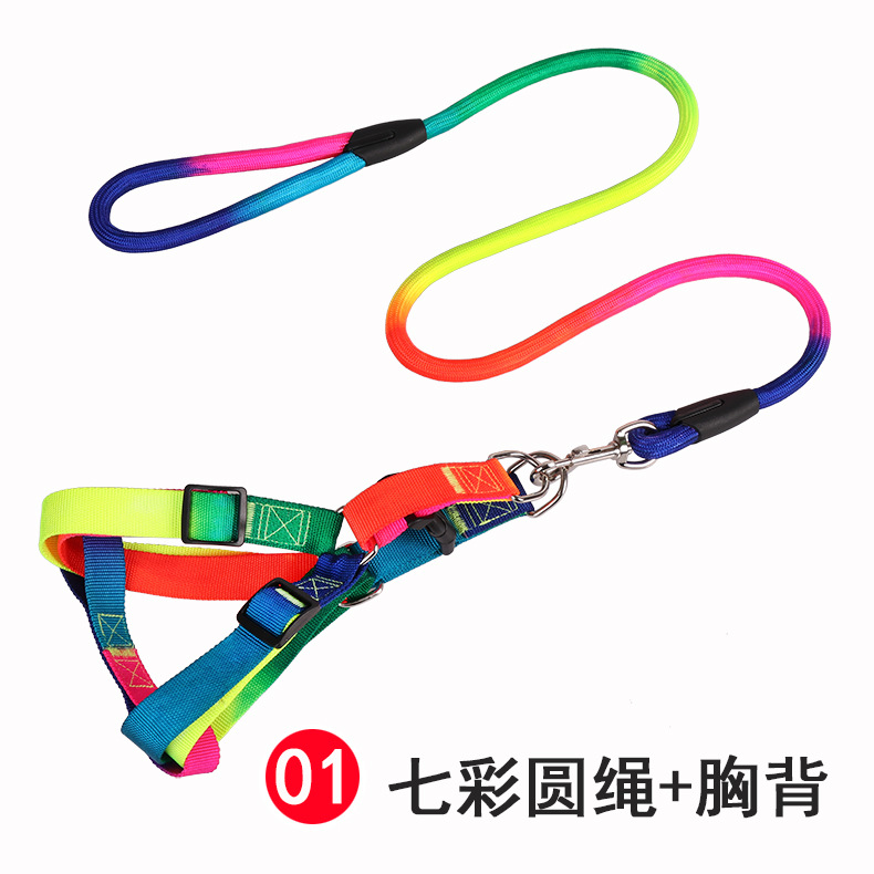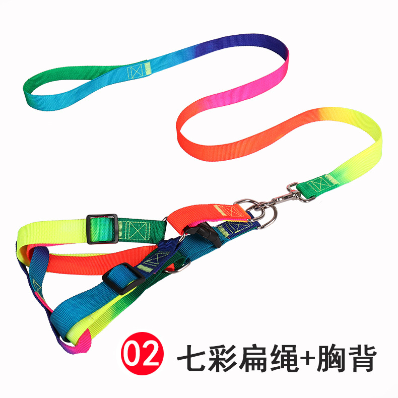 공장 직접 다채로운 애완 동물 가죽 끈 가슴 끈 개 가죽 끈 나일론 무지개 개 가죽 끈 고리 도매