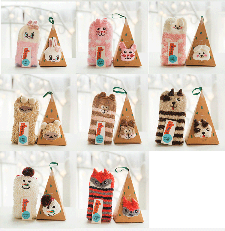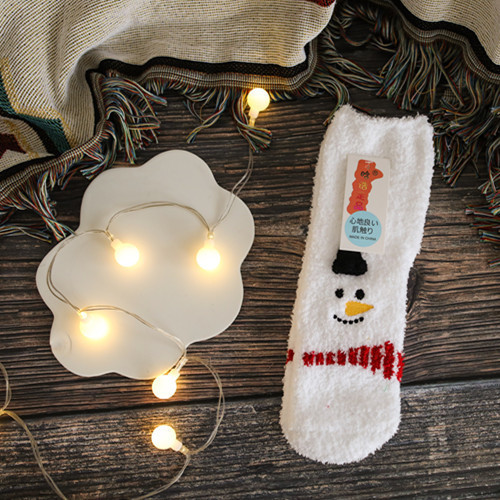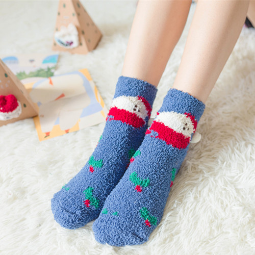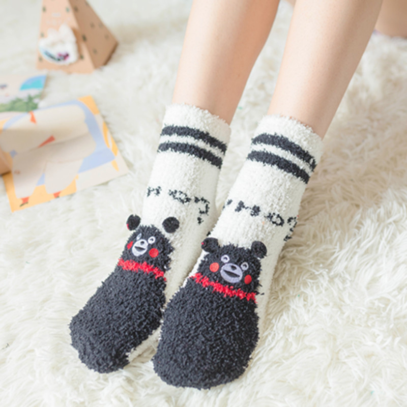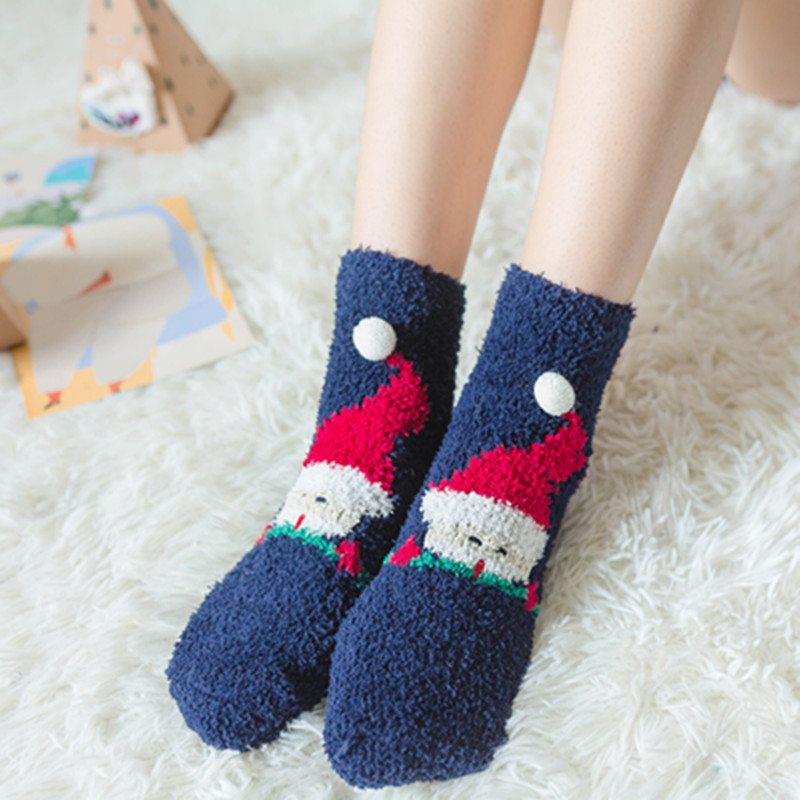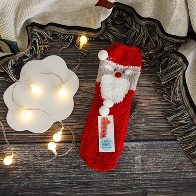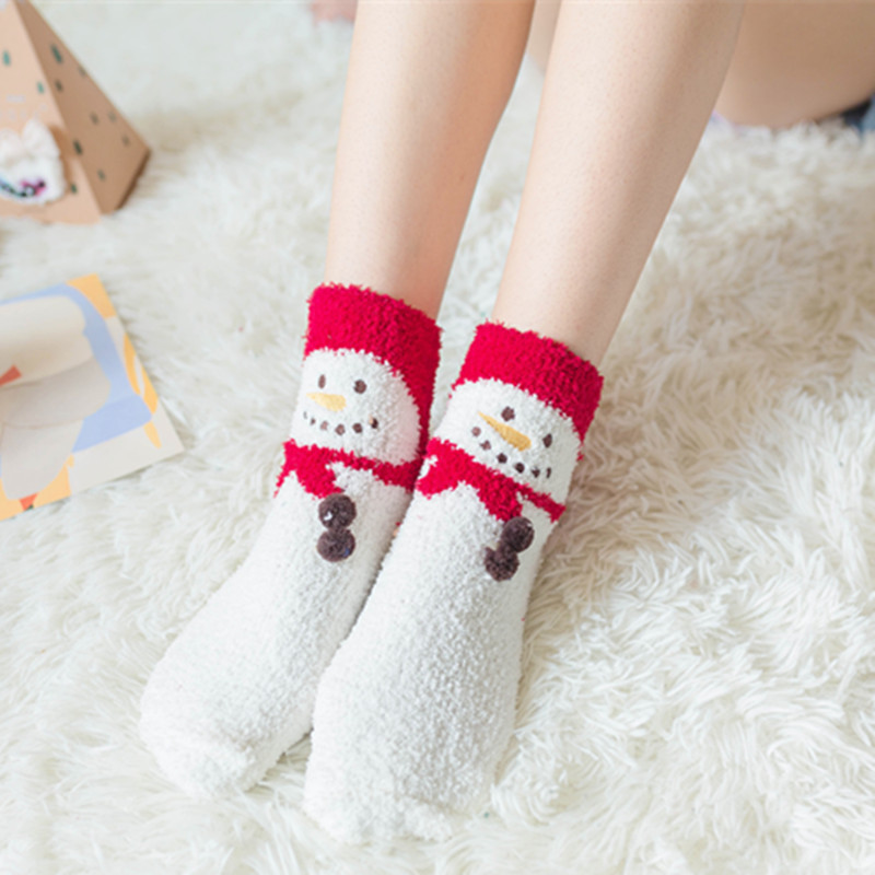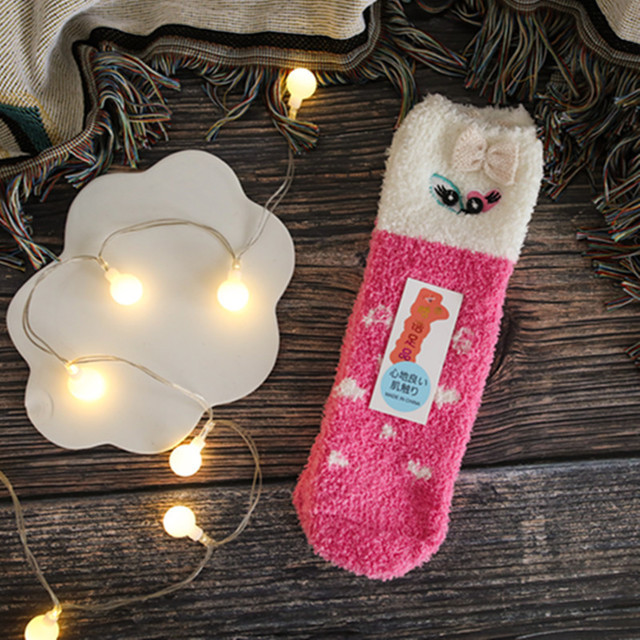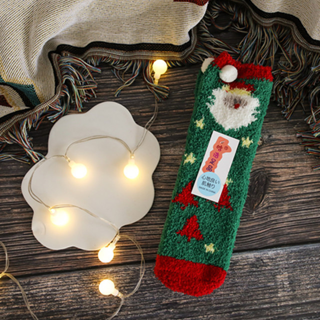 새로운 산호 양털 여성용 양말 일본 입체 만화 크리스마스 바닥 양말 가을과 겨울 두꺼운 따뜻한 테리 양말