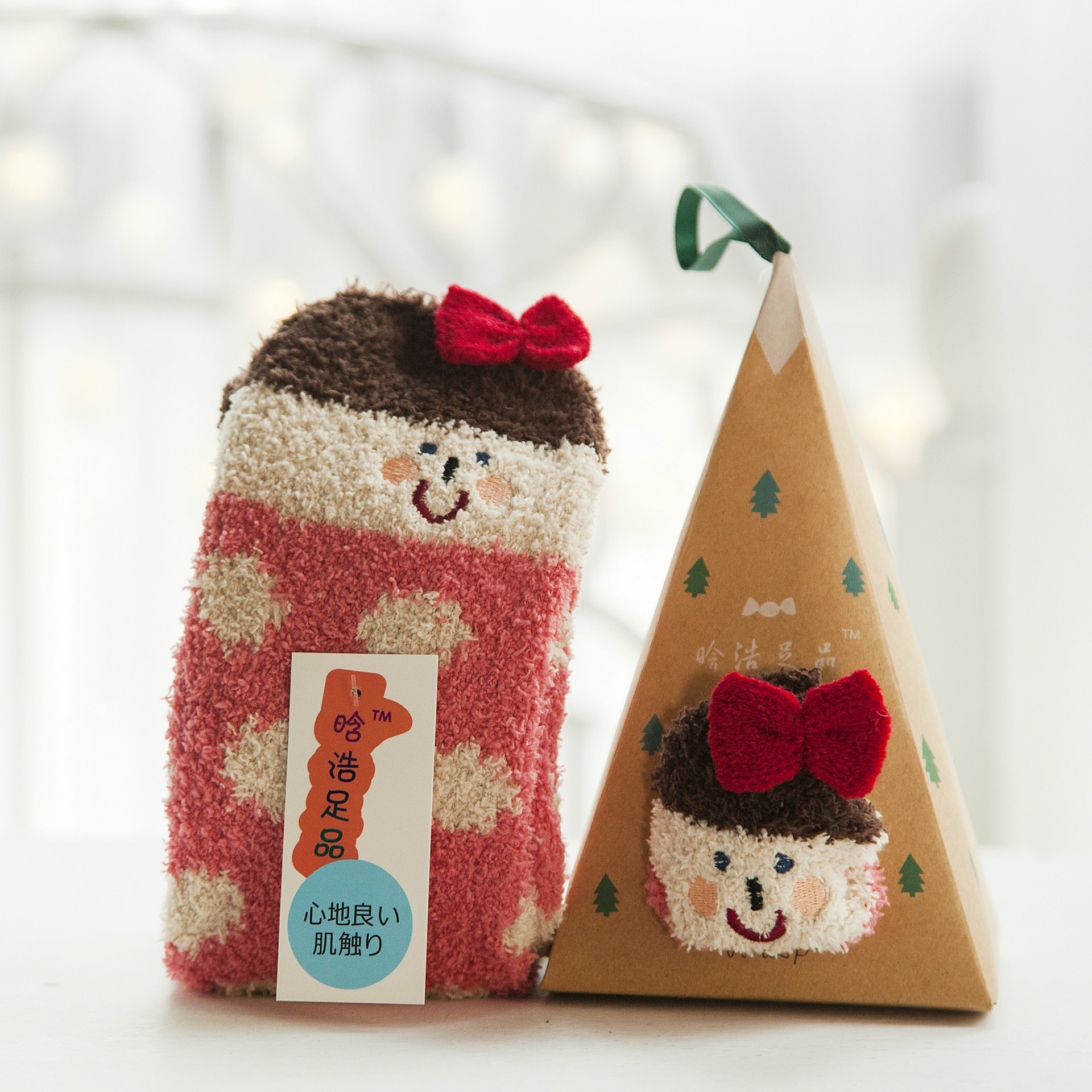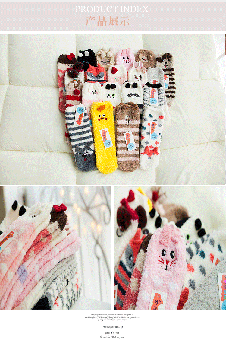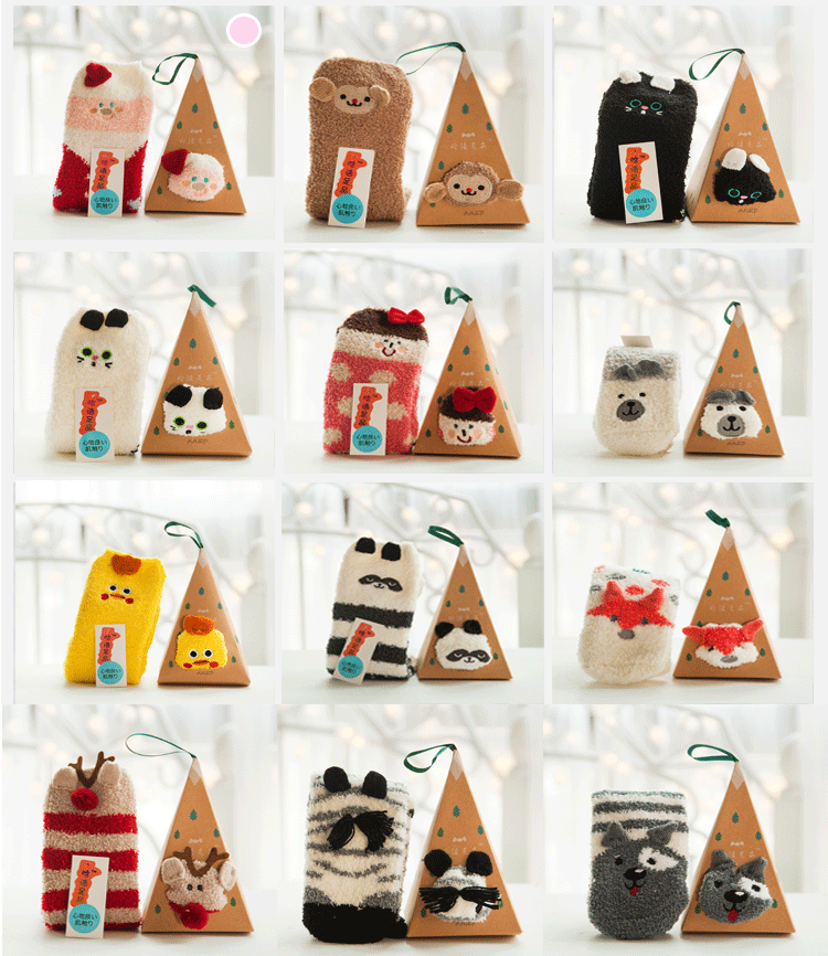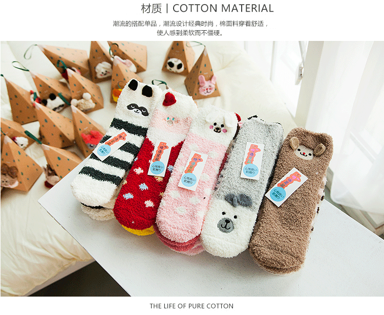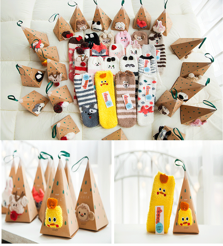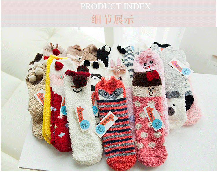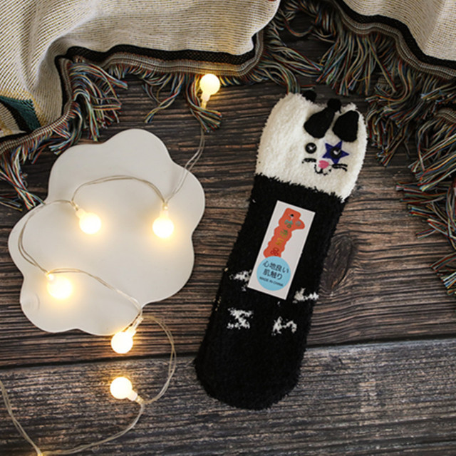 새로운 산호 양털 여성용 양말 일본 입체 만화 크리스마스 바닥 양말 가을과 겨울 두꺼운 따뜻한 테리 양말