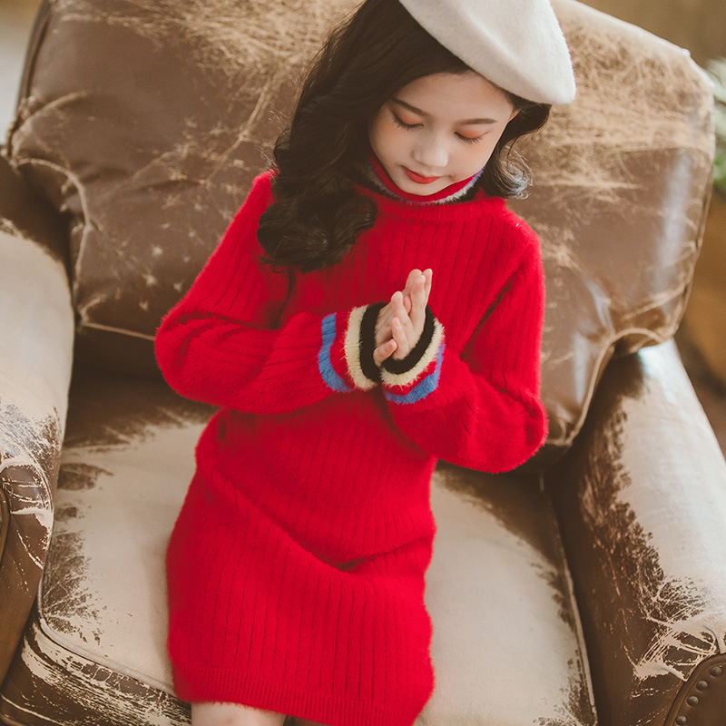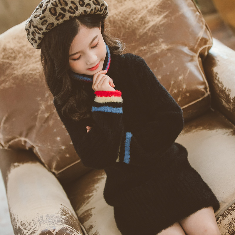 여아용 중간 길이 밍크 벨벳 스웨터 2026 가을 겨울 신상 아동용 한국 스타일 세련된 하이넥 두꺼운 베이스 스웨터스토어 가기