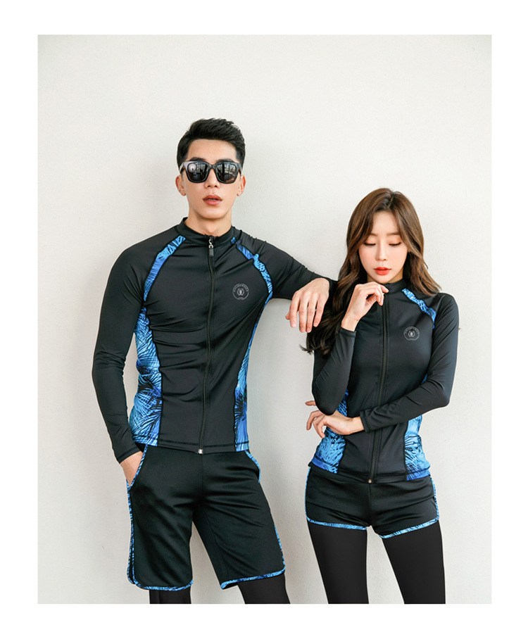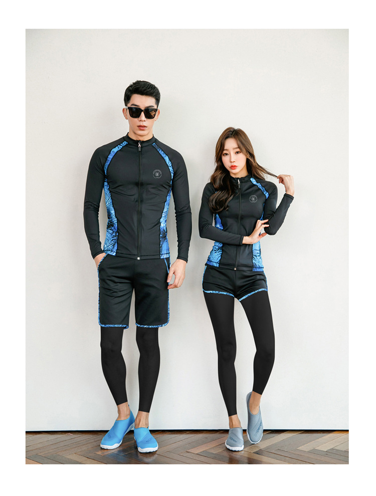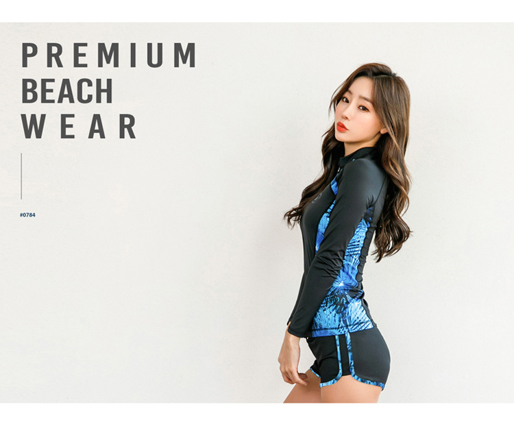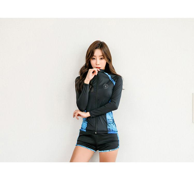 한국 분할 수영복 여자의 지퍼 긴 소매 복서 패션 여자의 수영복 배꼽 취재 온천 휴가 서핑 의류