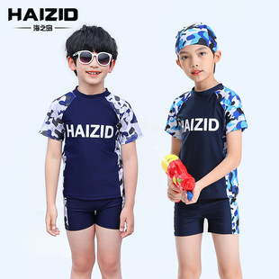 儿童泳衣男孩中大童分体泳衣泳裤套装海边度假防晒速干游泳衣批发