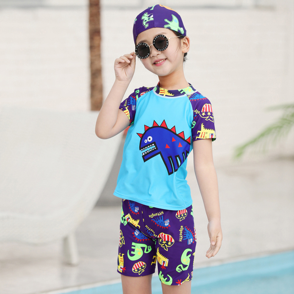 儿童泳衣男 泳裤泳帽温泉宝宝大码防晒泳衣可爱卡通分体男童泳衣