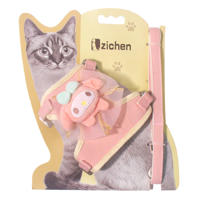 애완 동물 고양이 견인 로프 가슴 스트랩 조끼 스타일 안티 브레이크 프리 격자 만화 곰 나일론 메쉬 고양이 견인스토어 가기