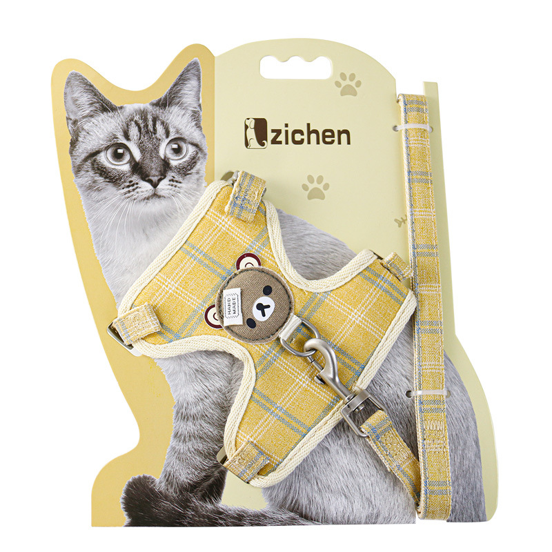 애완 동물 고양이 견인 로프 가슴 스트랩 조끼 스타일 안티 브레이크 프리 격자 만화 곰 나일론 메쉬 고양이 견인