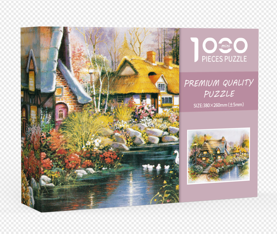 本款1000片迷你拼图尺寸是38*26cm,是一款适合14岁以上小孩及成人益智减压的,特点是不规则刀模切割,颗粒较小,难度更高,采用加厚纸制作,外盒质量较好,由于1000片外盒外文,适合外贸平台批发,价格便宜,另外需要胶水及相框的亲们请联系客服,我司是一家专业制作拼图及配件的产品,本拼图一个可以定制加工,详情请联系我们在线客服。