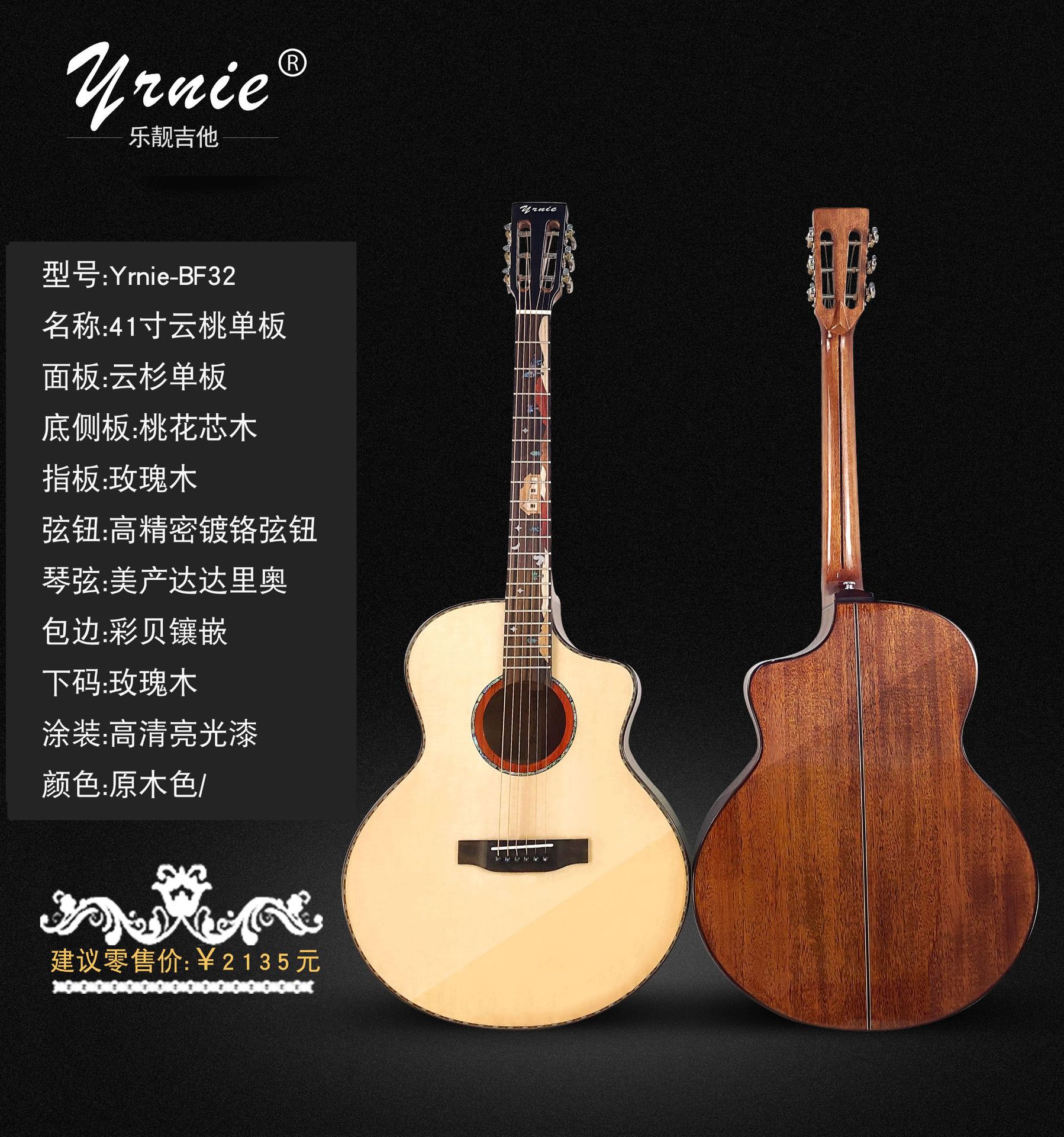 정품 yrnie Lejing 브랜드 36/38/41 "싱글 보드 고급 클래식 헤드 스프루스 브라이트 어쿠스틱 기타