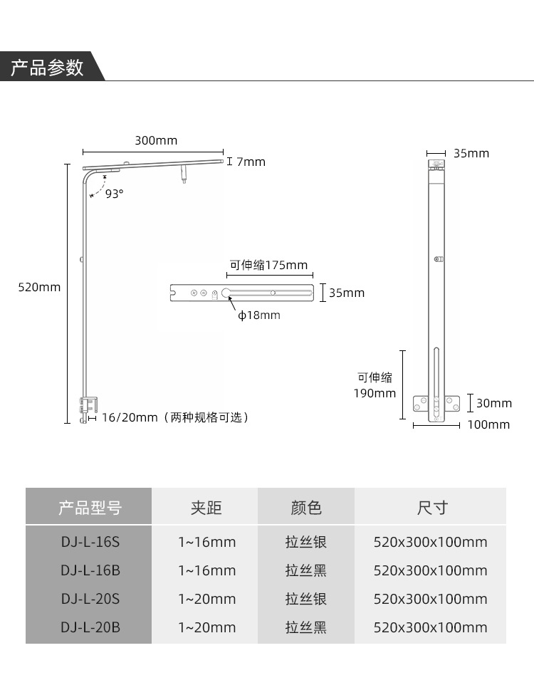 • 싱글 암 램프 홀더 [16mm] 블랙