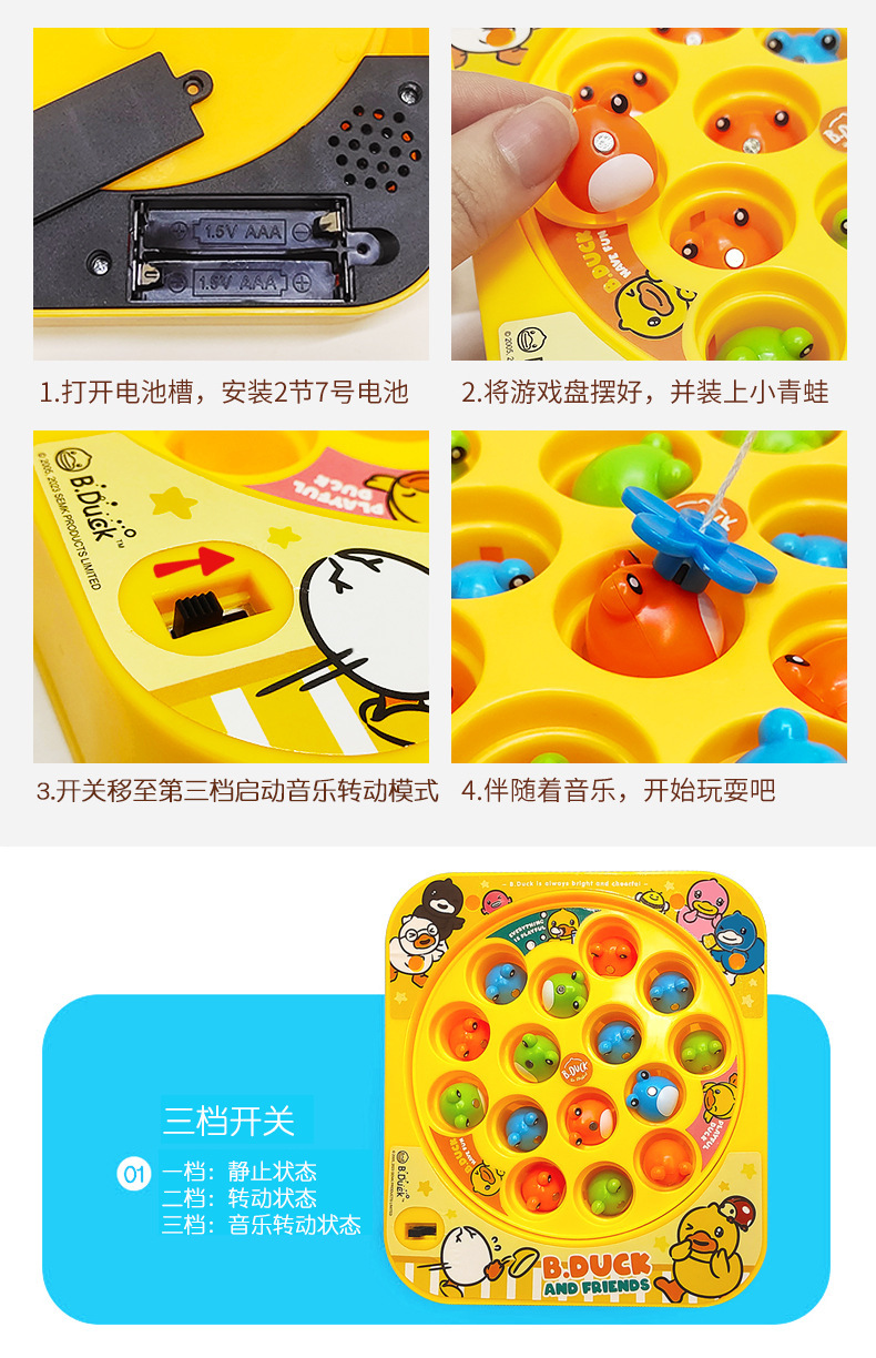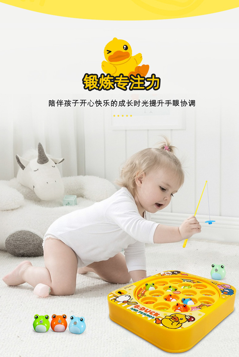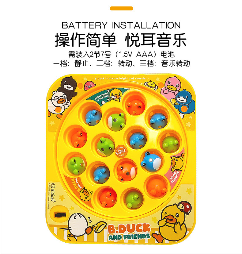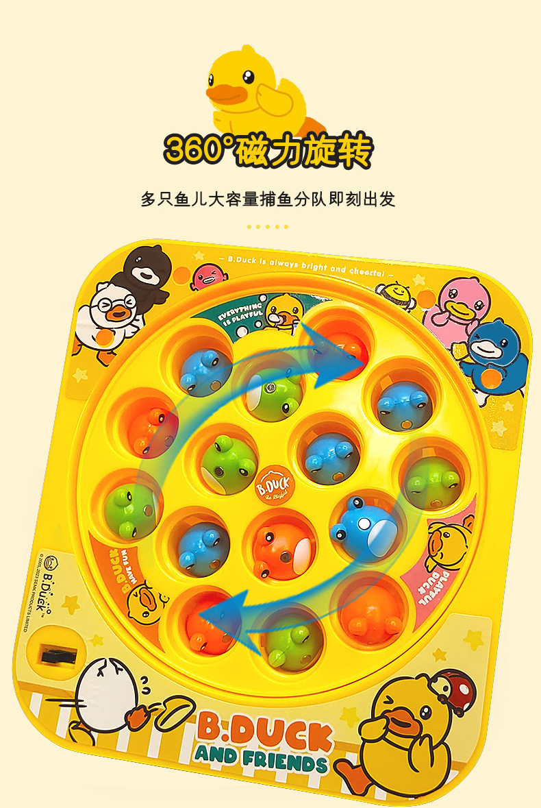 B.DUCK 옐로우 DUCK 전기 회전 음향 자기 낚시 대화 형 게임 조기 교육 데스크탑 장난감 2-6 세스토어 가기